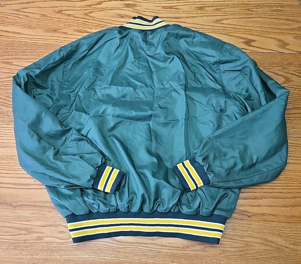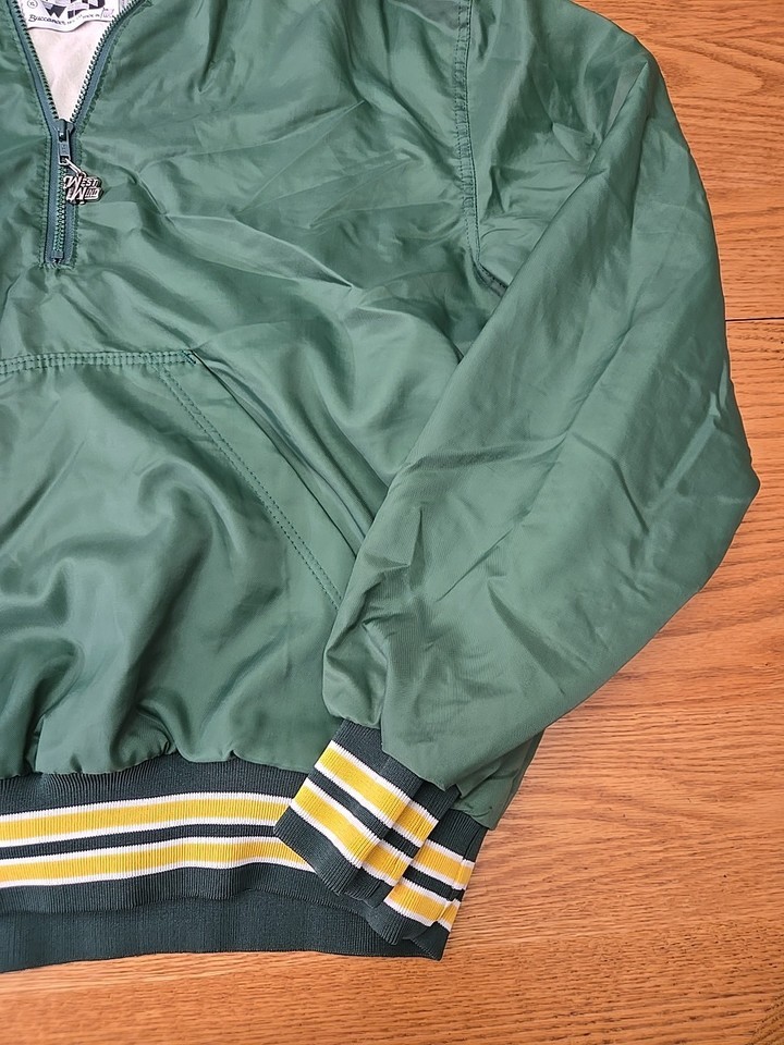 West Wind Vtg Quarter Zip Jacket Mens XL Green Yellow Union USA Satin Pullover