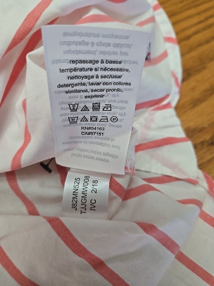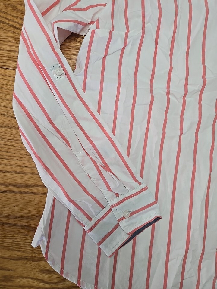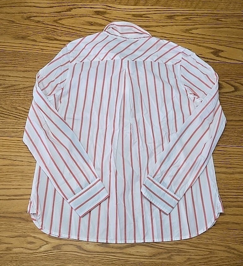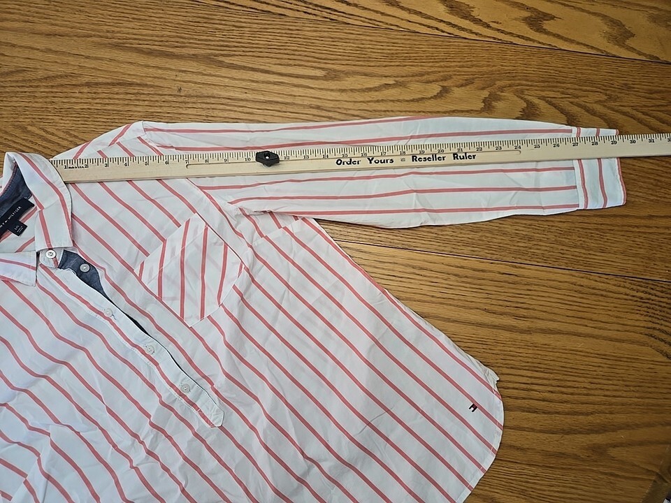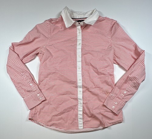 Tommy Hilfiger 1/2 Button Up Shirt Womans Size Large White Coral Stripe F2
