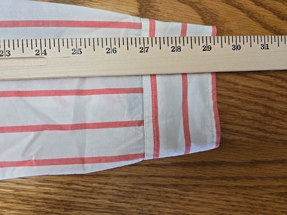 As is the nature with used clothing, original measurements and fit may have changed over time due to washing/drying and other factors. If you need additional physical measurements to help you make a decision, please let me know, and I will do my best to get you what you need.