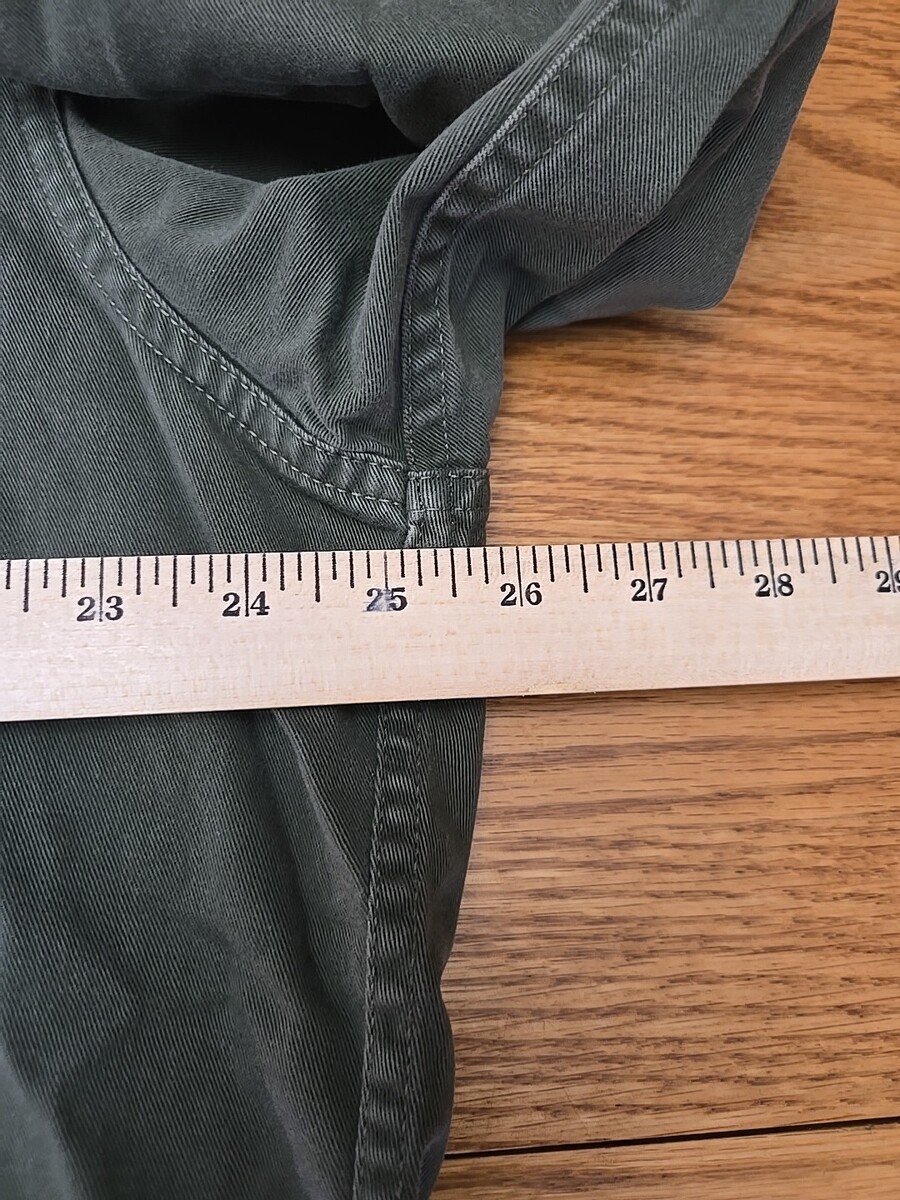 As is the nature with used clothing, original measurements and fit may have changed over time due to washing/drying and other factors. If you need additional physical measurements to help you make a decision, please let me know, and I will do my best to get you what you need.