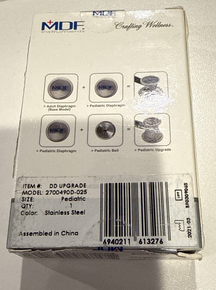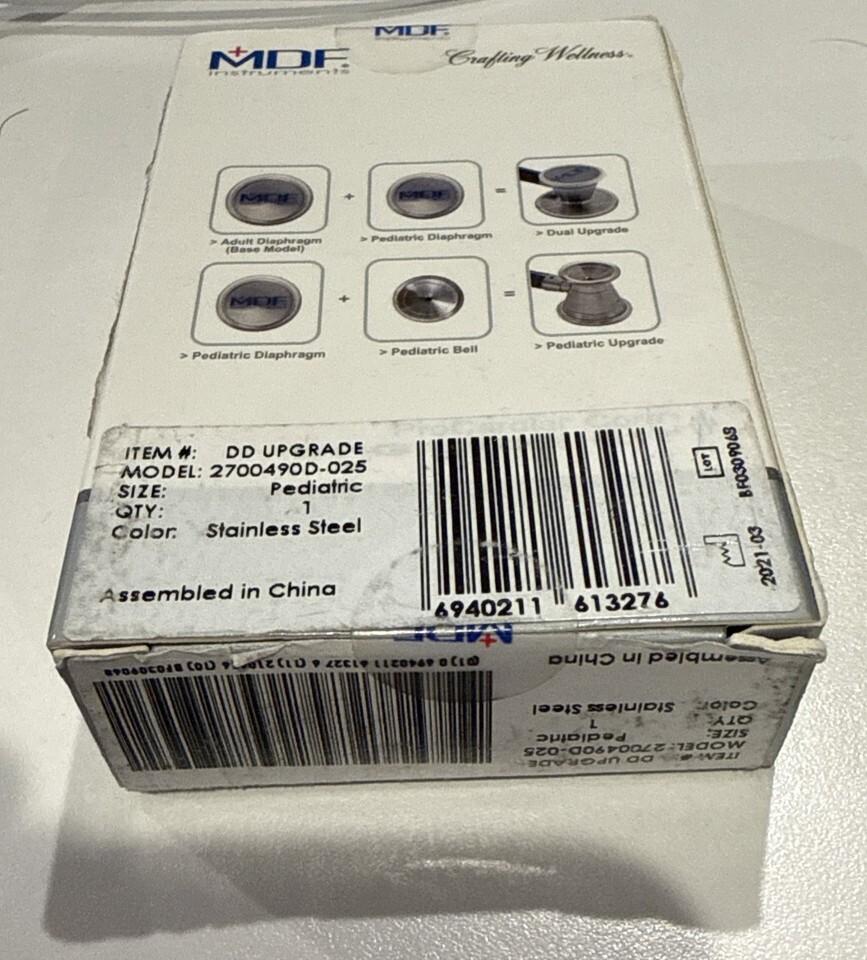 The MDF Instruments Titanium MD One Epoch Upgrade Pediatric Upgrade is a diaphragm designed for stethoscopes, specifically intended for pediatric use. With the brand's reputation for quality and the upgraded titanium material, this product ensures durability and precision in medical settings where accurate auscultation is essential. The sealed packaging guarantees that the product is brand new and ready to use, providing healthcare professionals with reliable equipment for their practice.