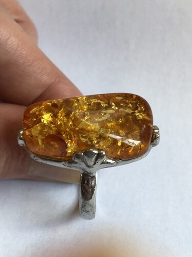 Vintage Ladies Amber Sterling Silver Ring and similar items
