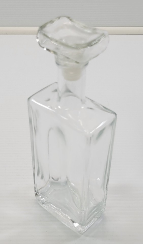 PV) Rectangular Glass Liquor Bottle Decanter With Stopper 10"