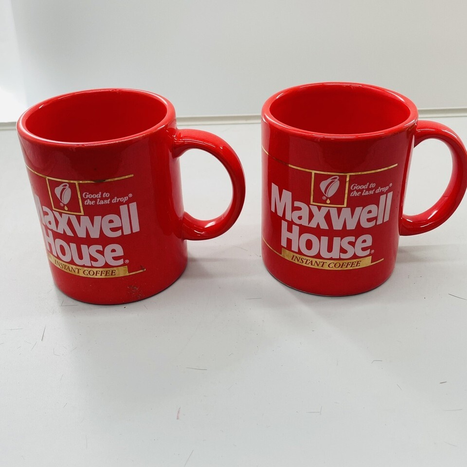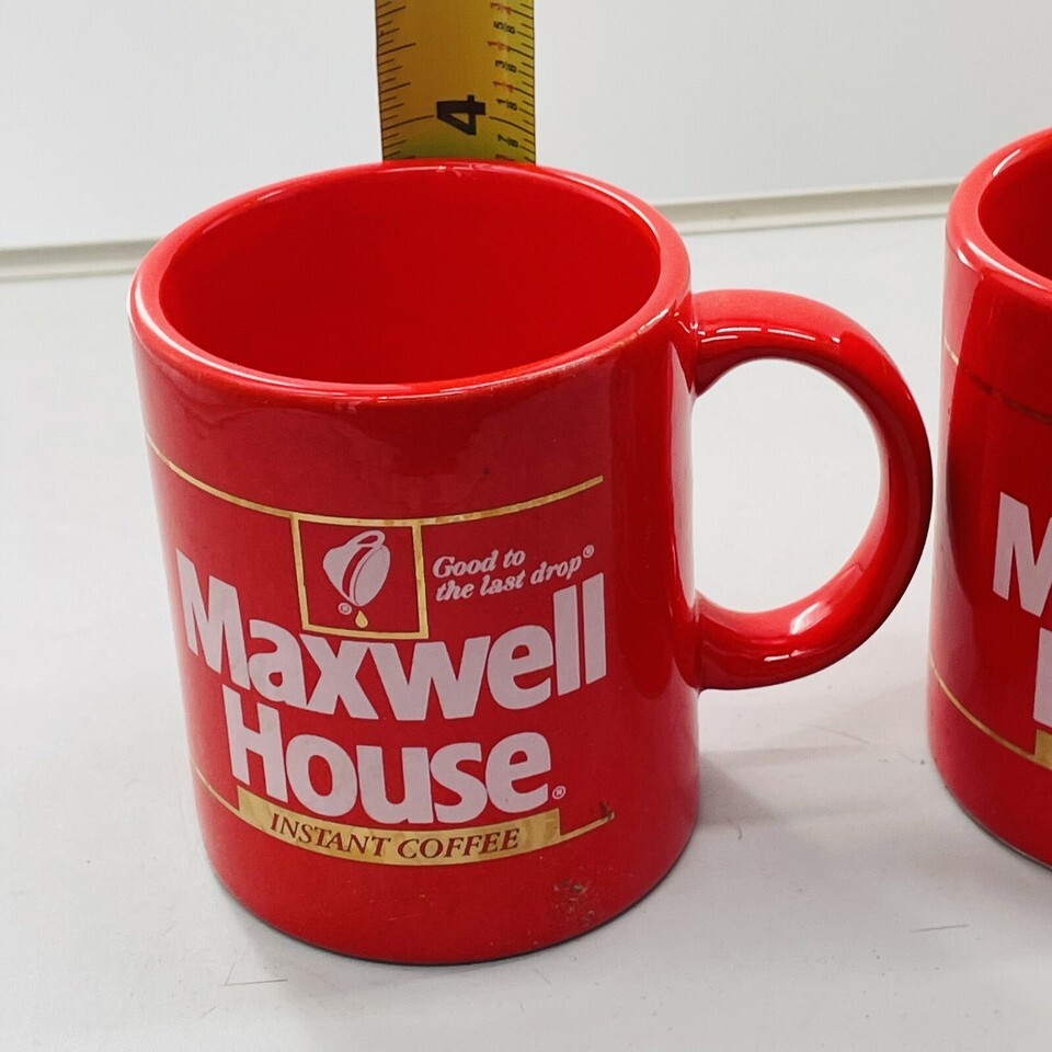 2 Vintage 1980's Instant Maxwell House Coffee Cups Mugs Red Gold Trim Japan