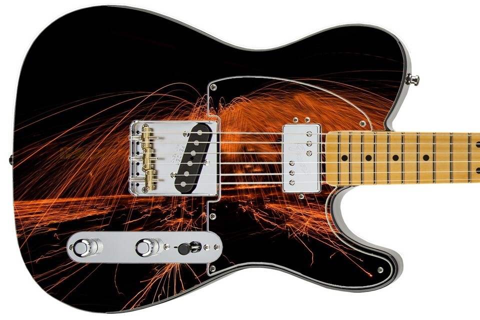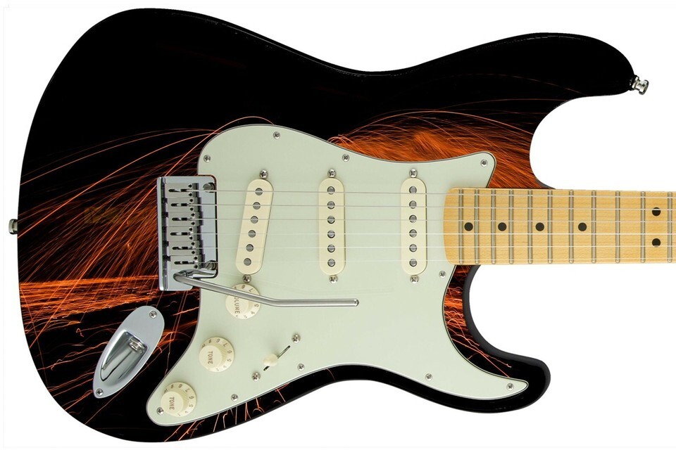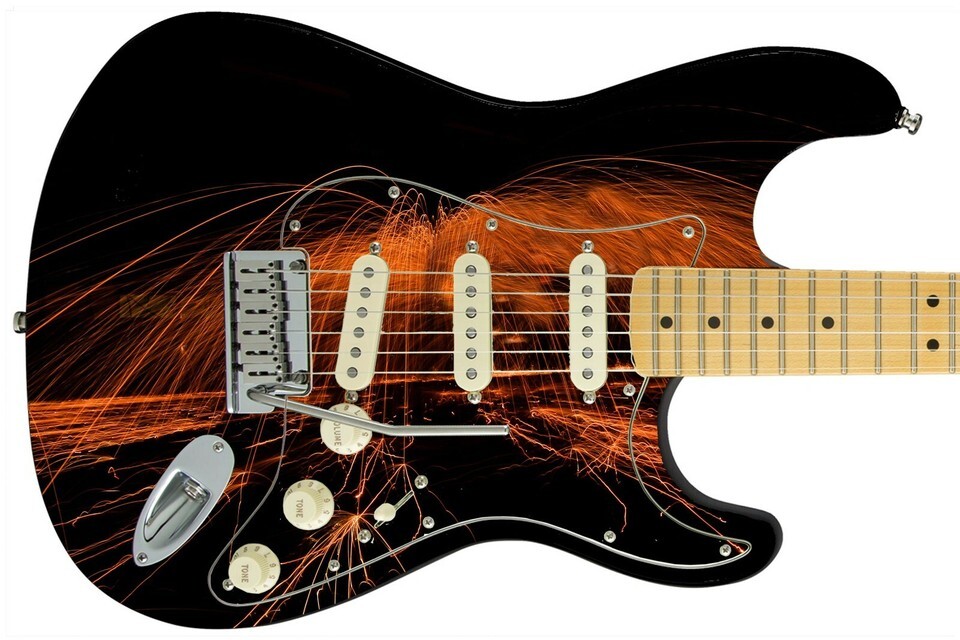 Guitar Skin Axe Wrap Re-skin Fireworks & Sparks Of Orange Light 461
