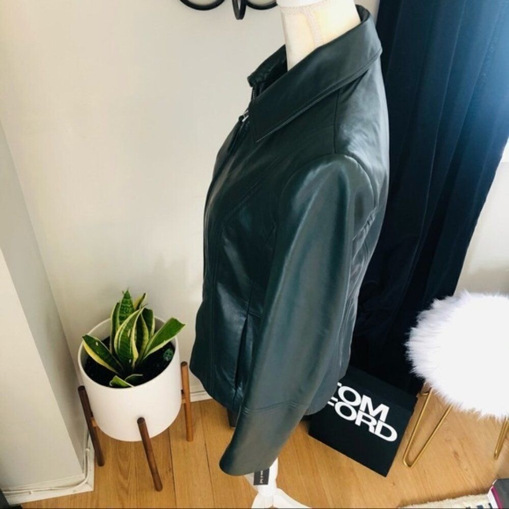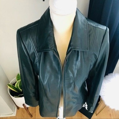 Preston & York Lambskin Leather Moto Jacket, Luxurious, Dark Green, Small, NWT