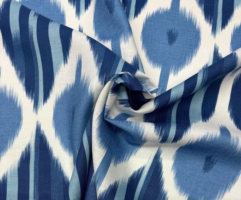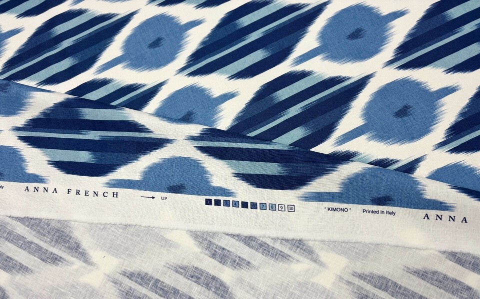ANNA FRENCH KIMONO NAVY GEOMETRIC LINEN DESIGNER MULTIUSE FABRIC 3.5 YARDS 54"W