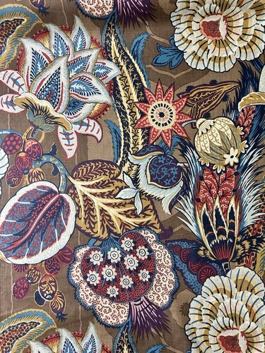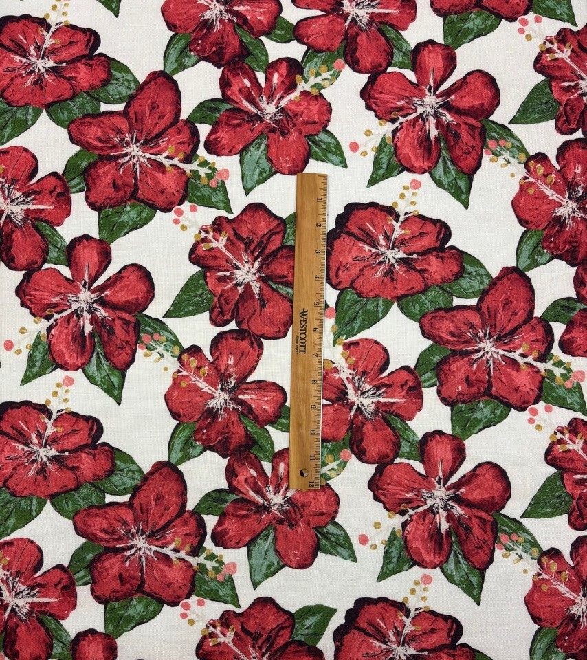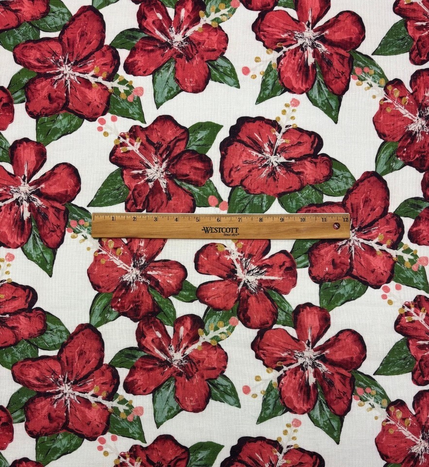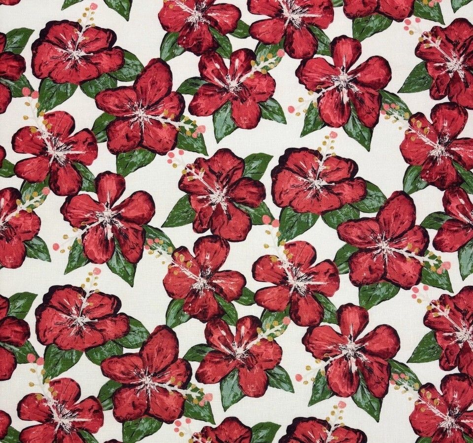 SCHUMACHER FABIENNE RED HAND PAINTED FLORAL DESIGN LINEN FABRIC 7 YARDS 55"W