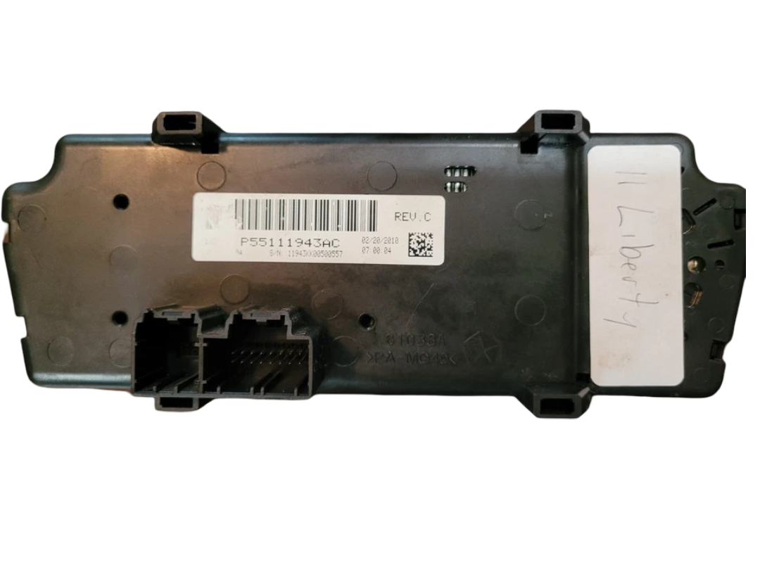 This OEM A/C Heater Climate Temperature control unit fits 2010?2012 Jeep Liberty models. It is designed to control the vehicle?s HVAC system, including heating, air conditioning, and temperature settings, to ensure proper cabin comfort. The unit is in good used condition with normal wear from use, showing no cracks, broken buttons, or damage, and all mounting points are intact. This is a direct replacement OEM part and will be sent with proper tracking.