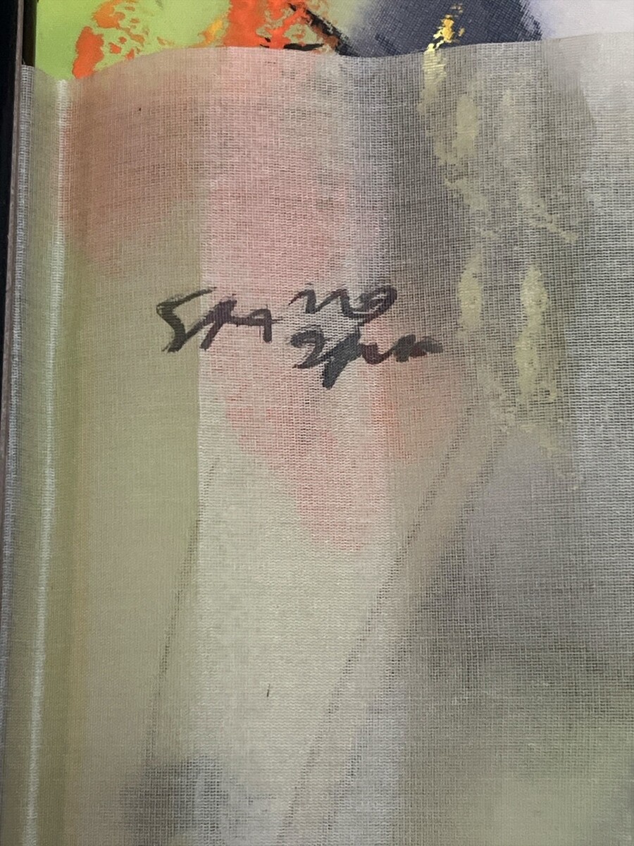 Good condition. Light waviness to the silk consistent with age and storage. No tears or major stains observed. Paint and gold accents remain vibrant. Please review photos for details.