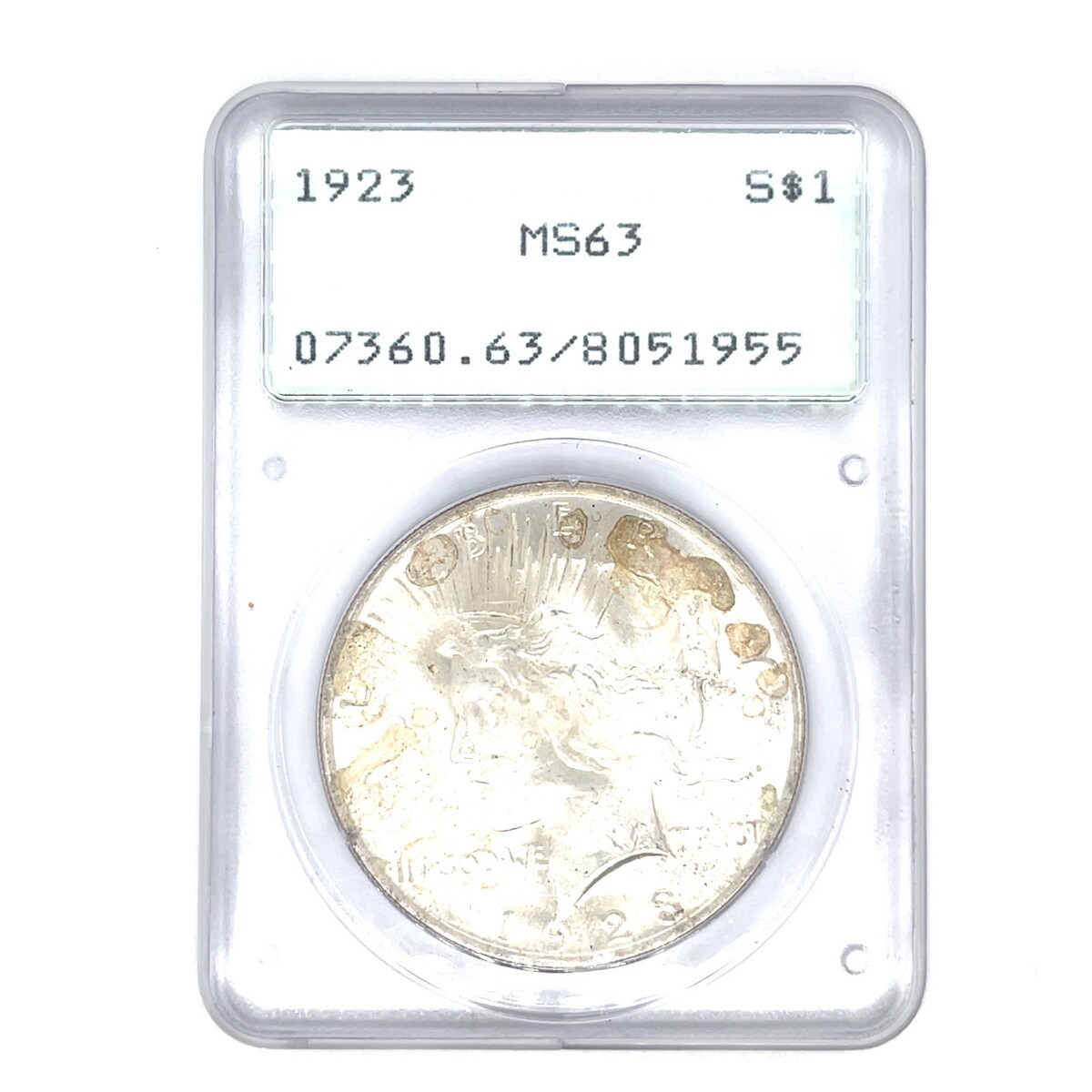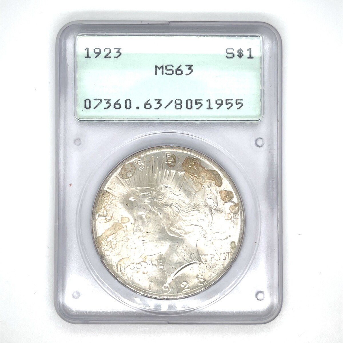 1923 $1 Peace Dollar PCGS MS63 Old Rattler Holder