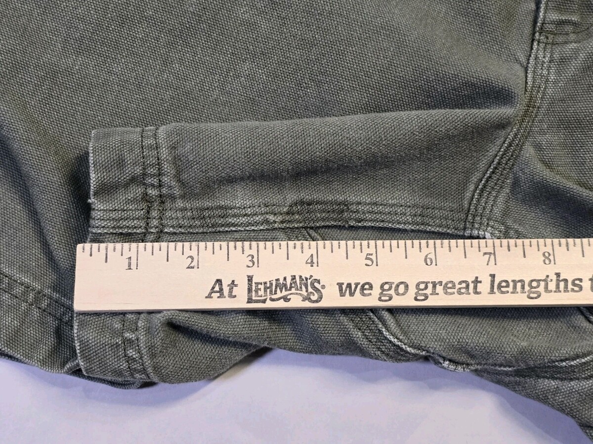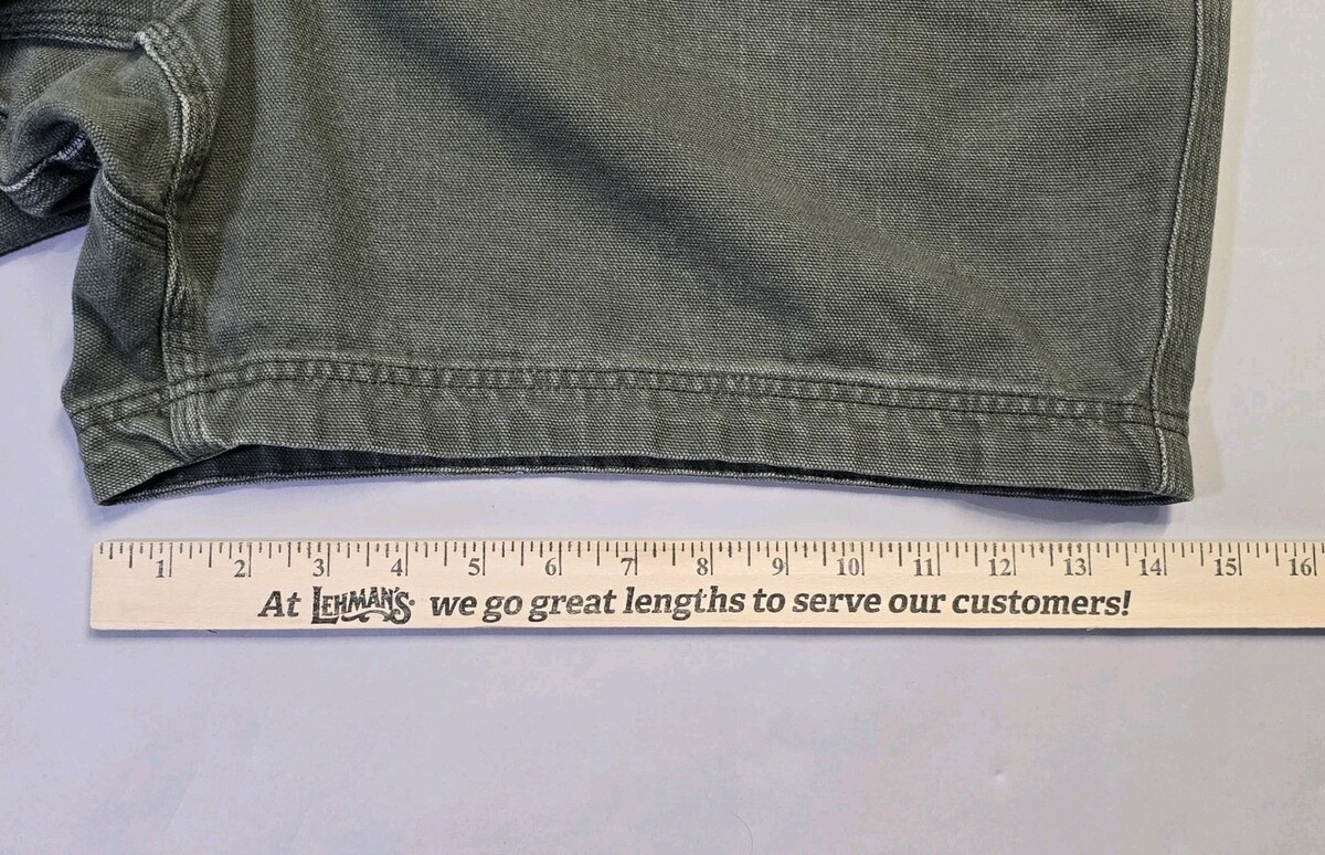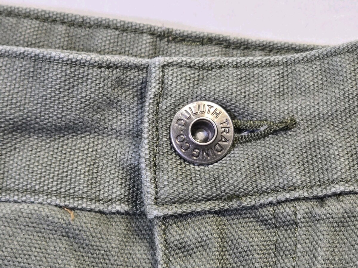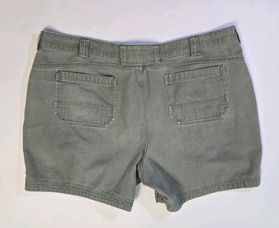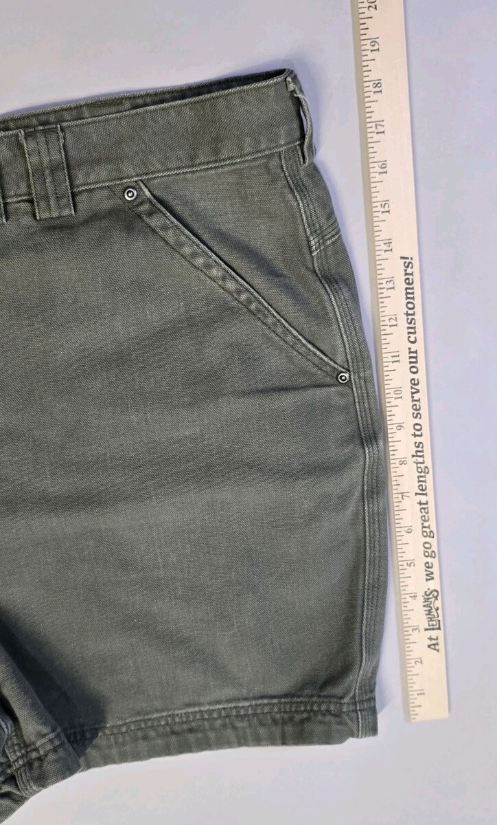Labeled 48 measured at 46. Please see all photos. The Duluth Trading Shorts for men in size 46 fit comfortably with a 7" inseam, perfect for various occasions like travel, casual wear, and work. Made of durable canvas fabric with a mid-rise, these cargo shorts feature practical elements like a zip closure, pockets, and a solid green color. The design includes accents such as buttons, zippers, and the Duluth logo, adding style to the functional features of these versatile shorts. Perfect for all seasons, these shorts are a wardrobe staple for the outdoor-loving man.