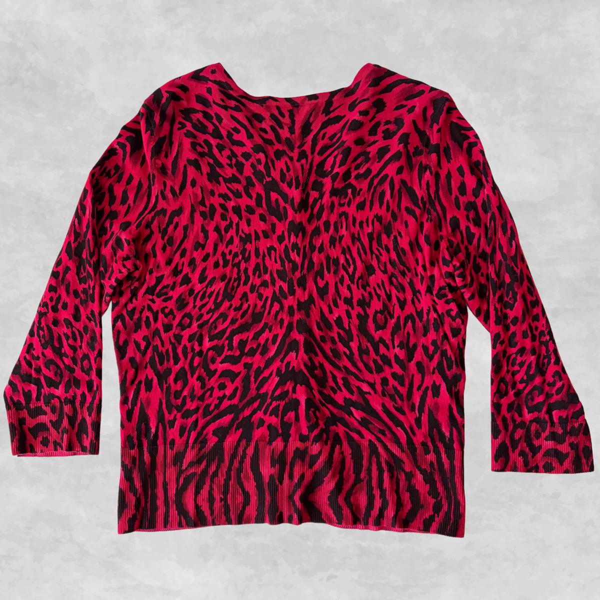 White House Black Market Womens XL Red Leopard Print Cardigan Sweater Snap Front