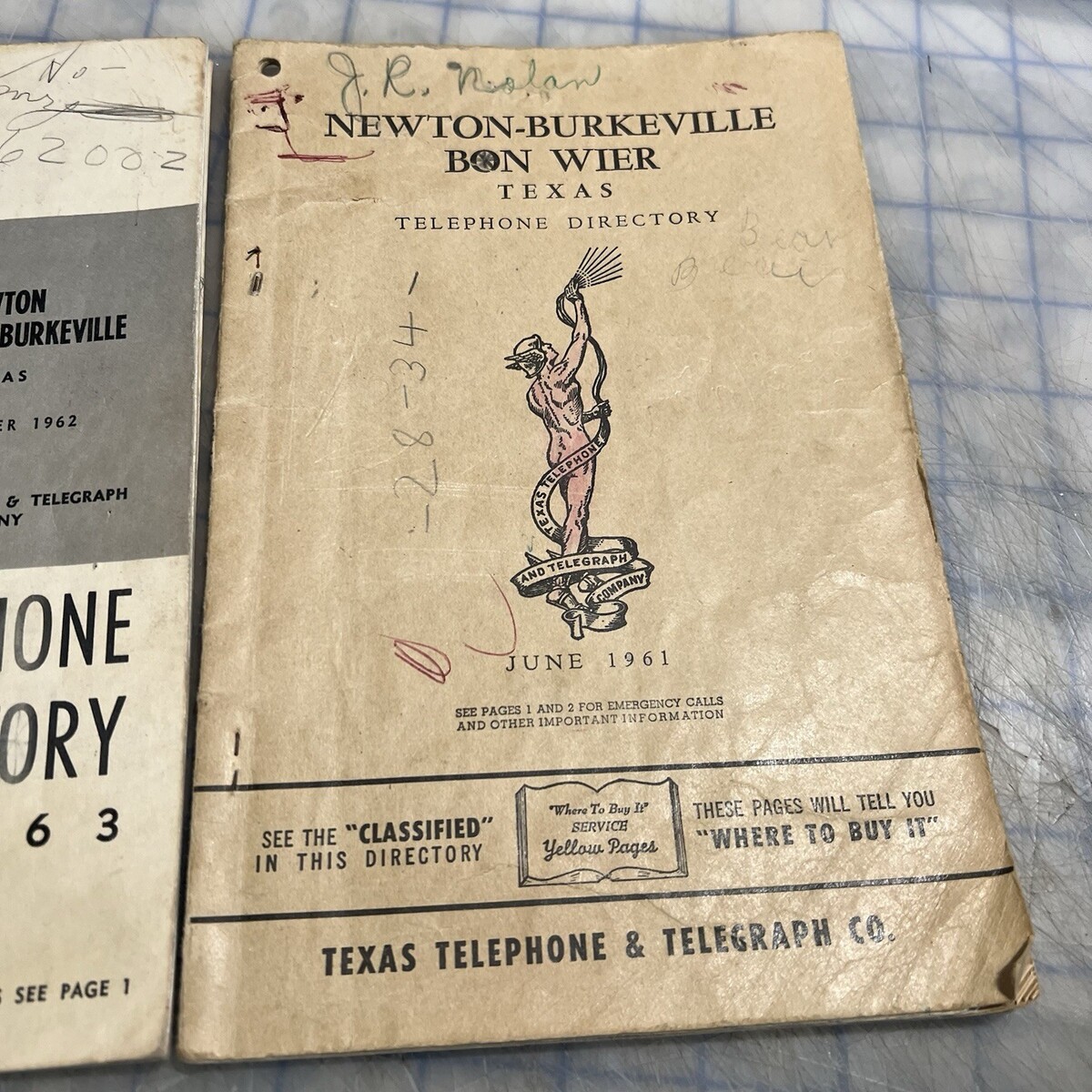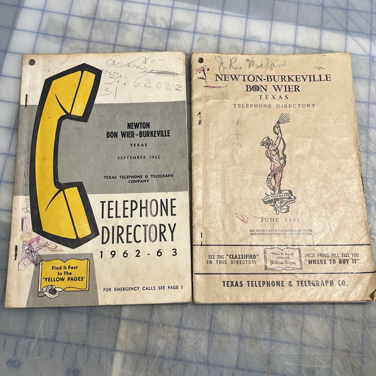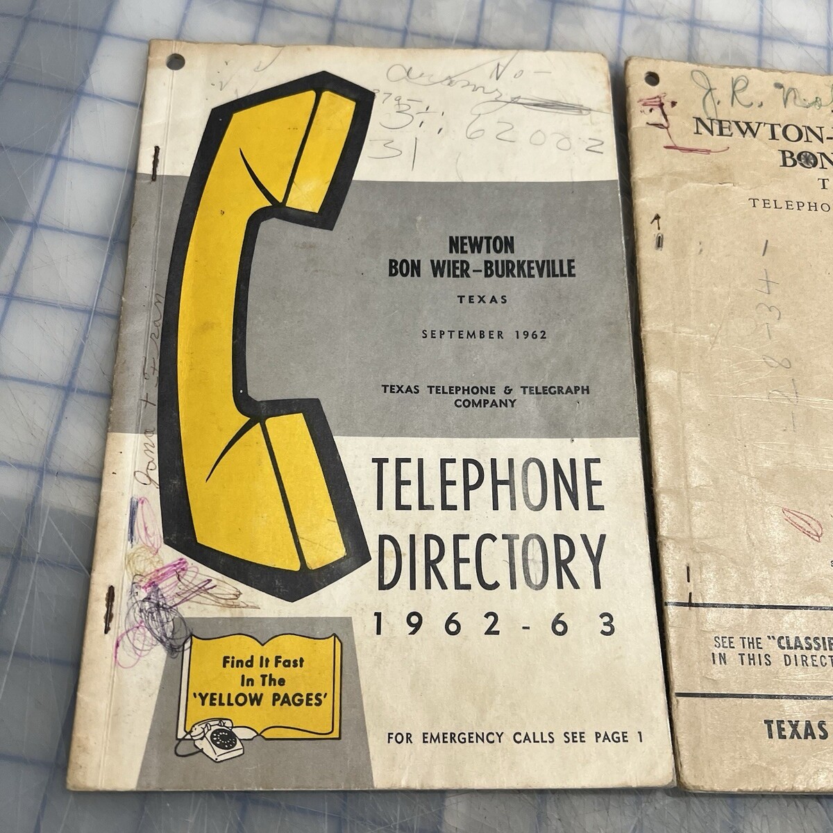 Vintage Phone Books 1961 1962 Newton Bon Wier Burkeville Texas