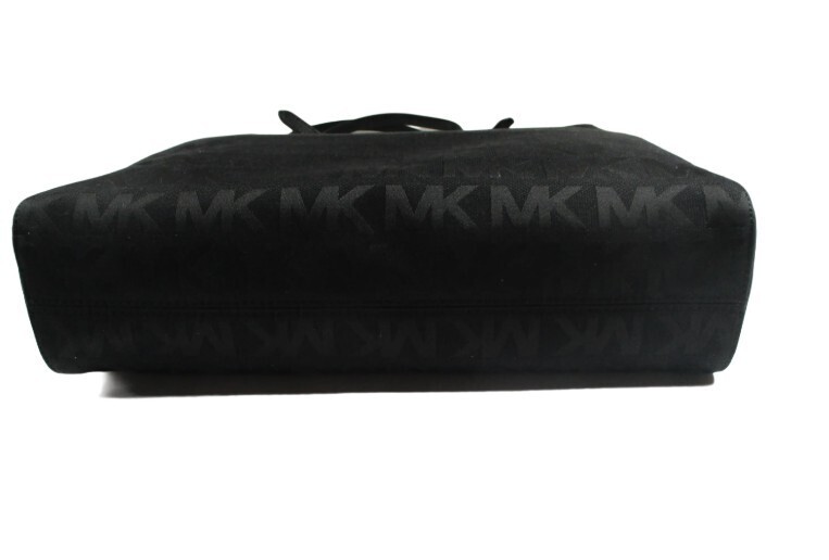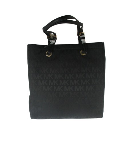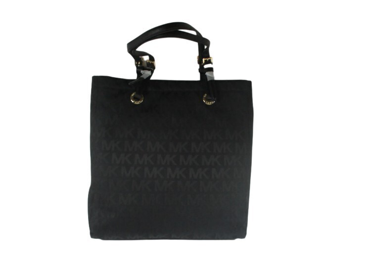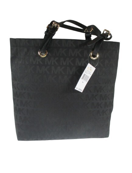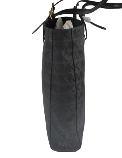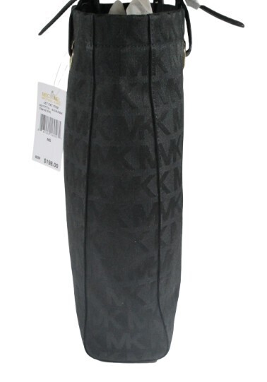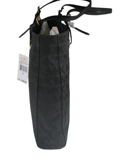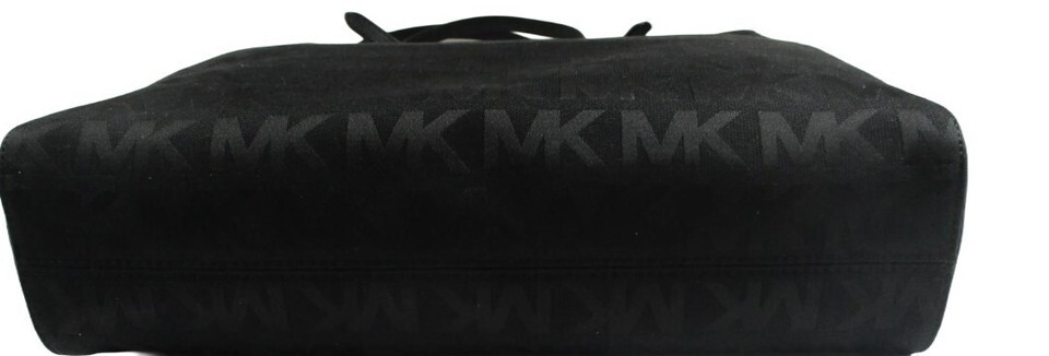 Michael Kors MK SIGNATURE NS TOTE 100% Authentic Michael Kors Beautifully designed, extremely functional, water repellent Features: Jacquard Fabric Color: Black Genuine Leather handles and trim Michael Kors Logo lining Outside (approximate dimensions): 10? high by 3? deep by 13? long Magnetic clasp closure Inside: 4 slip pockets 1 zippered pocket (approx. 10? by 5.5?) Michael Kors Signature lining Imported