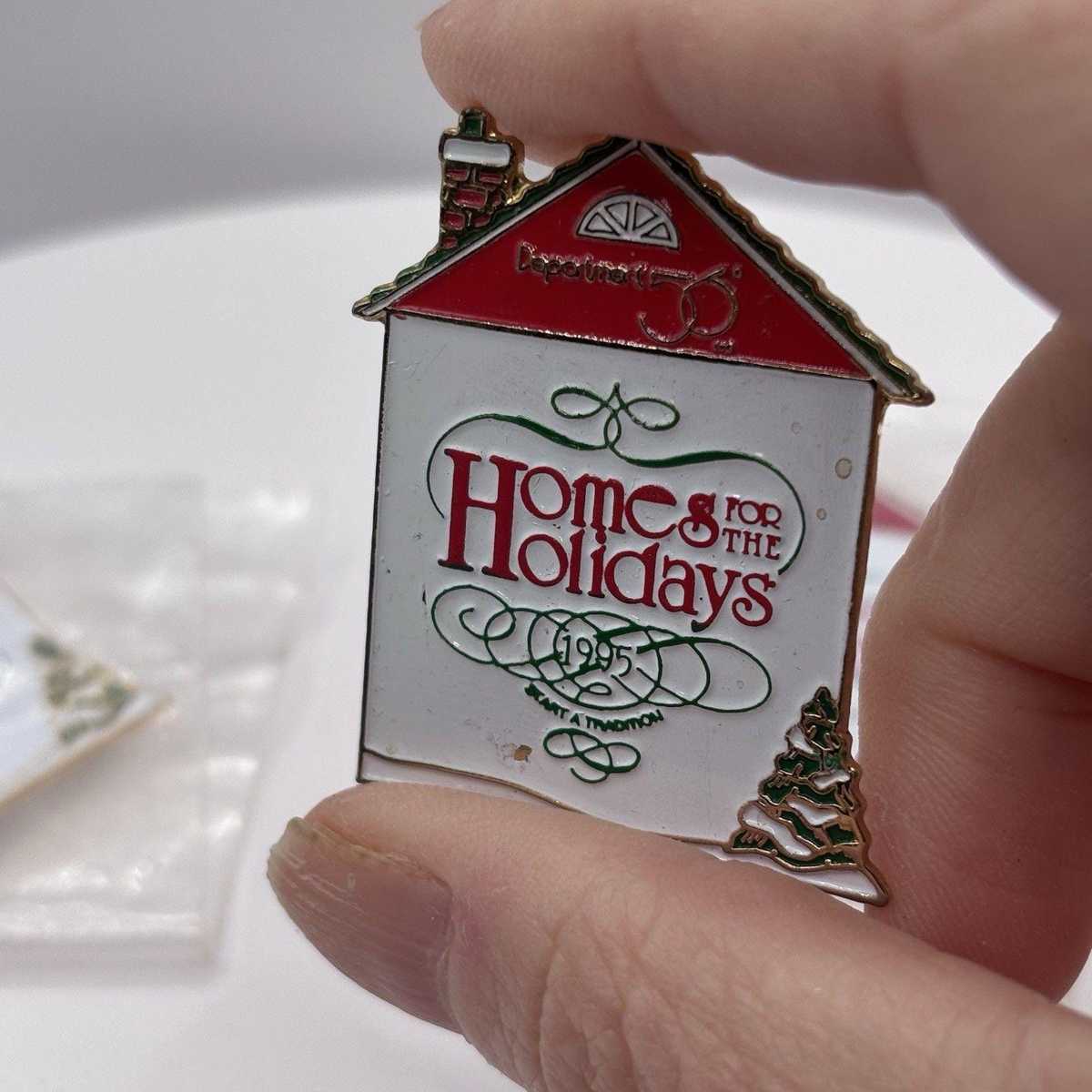 The Department 56 Collectable 1995 Christmas Pin Home For The Holidays is a rare and new item featuring a small multicolor enamel pin in the shape of a house.