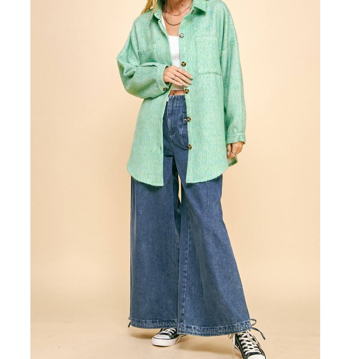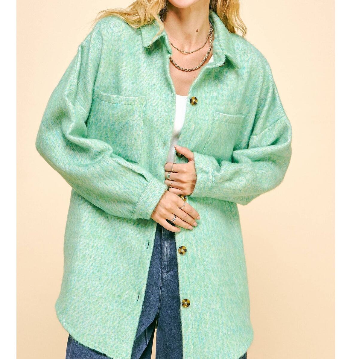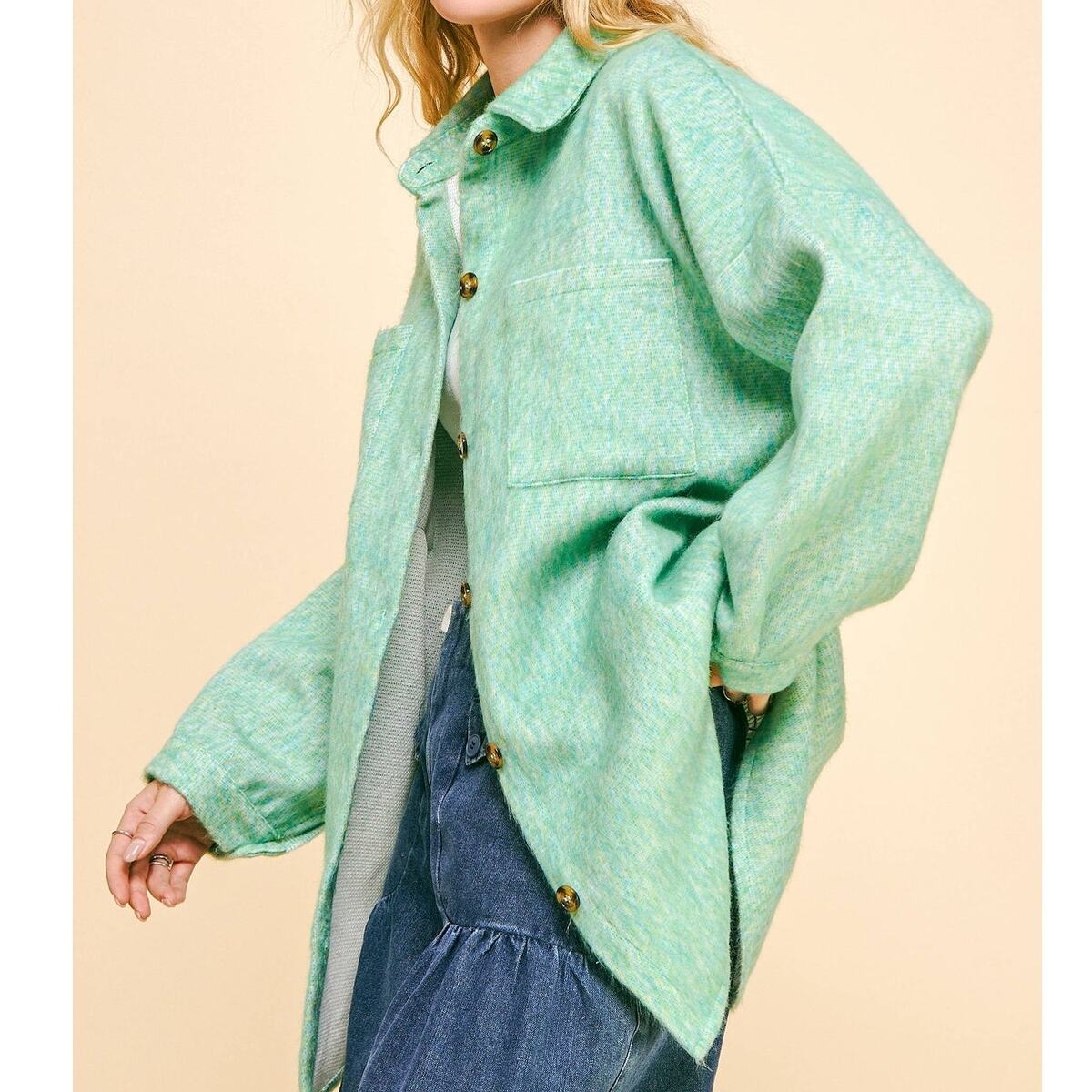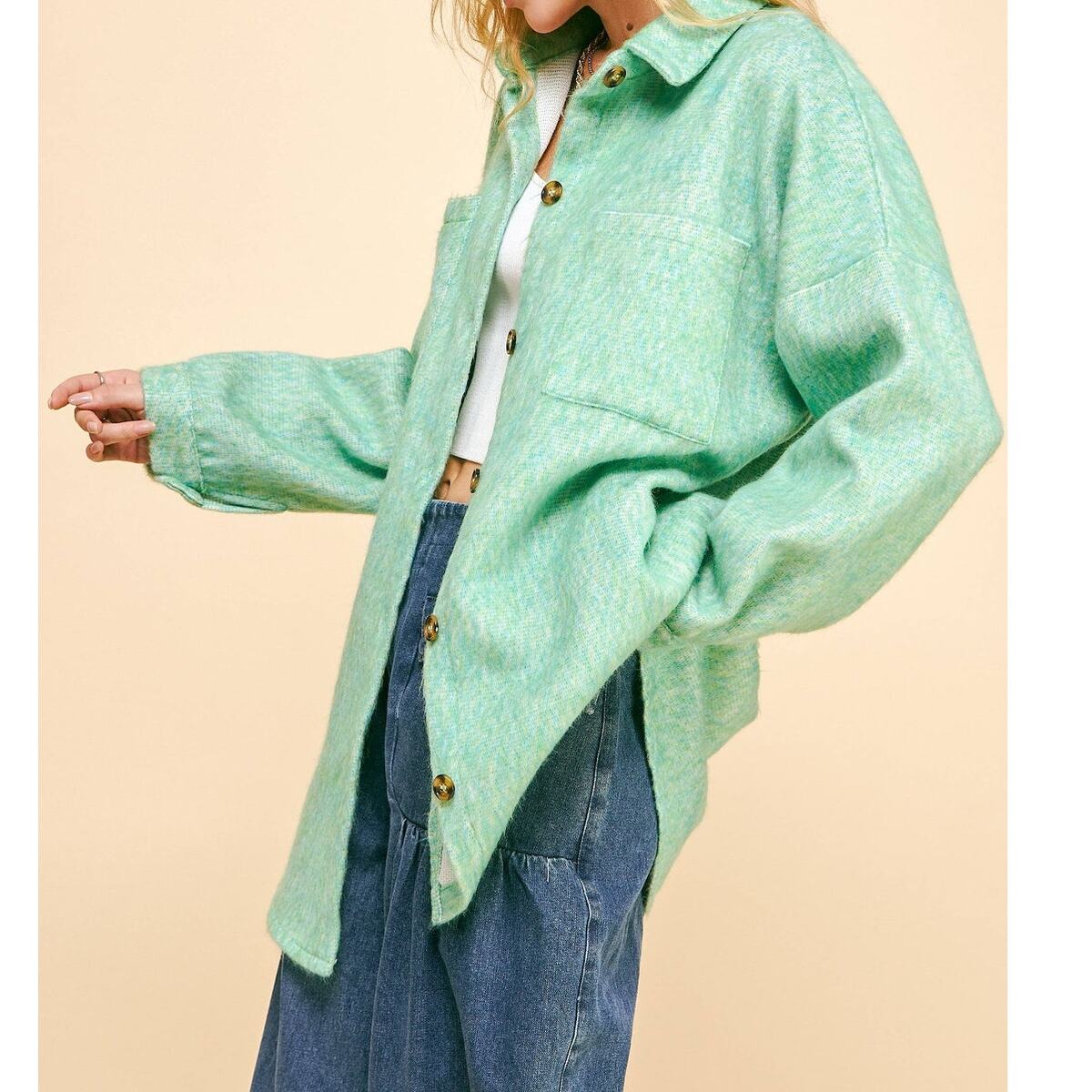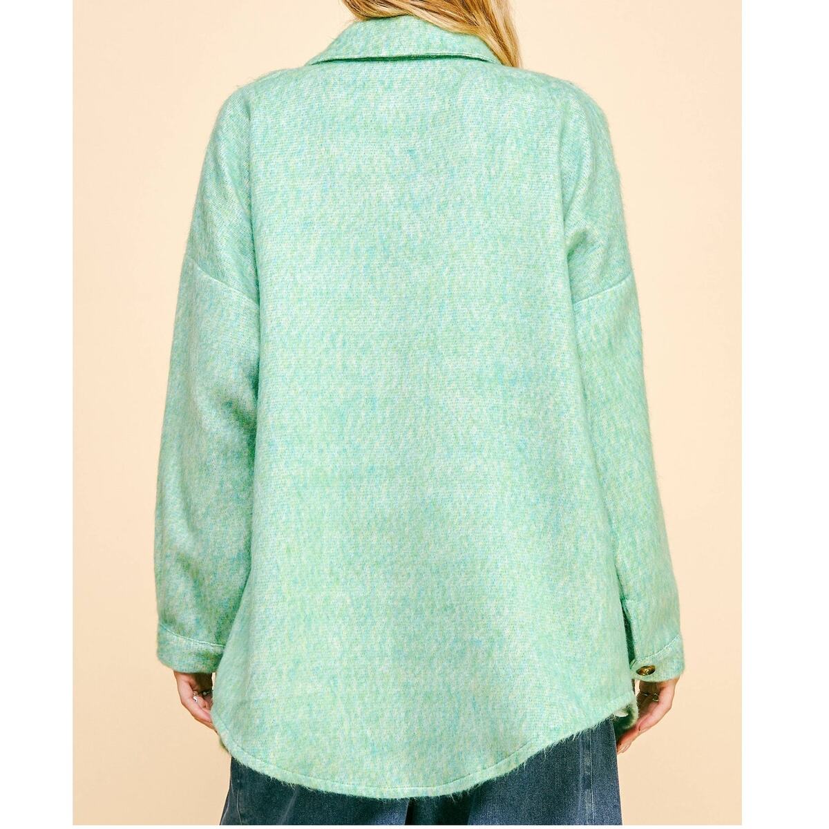 Textured Chest Pocket Button Front Jacket Shacket Mint Green