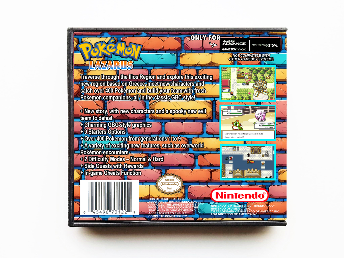 Explore an exciting new region in Pokemon Lazarus set in the Ilios Region (based on Greece). Meet new characters and catch over 400 Pokémon and build your team with fresh Pokemon companions, all in the classic GBC art style!