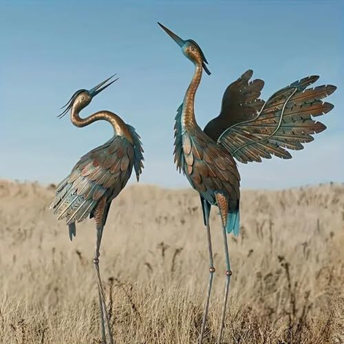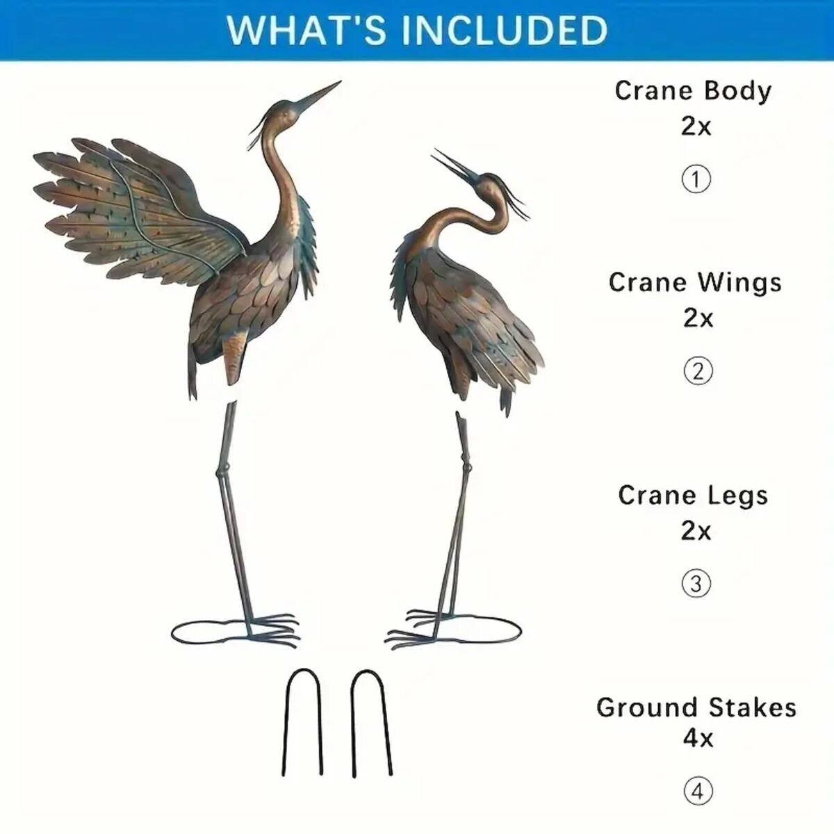 Generic Set of 2 Metal Crane Statues, Metal Heron Garden Statues, Bird Sculpture