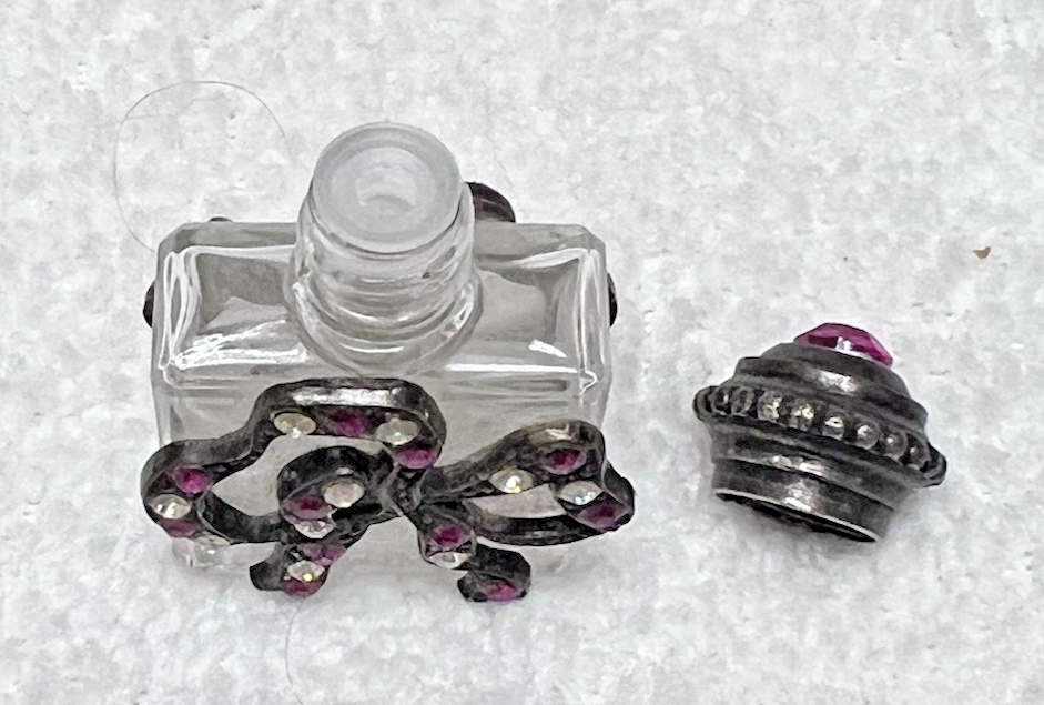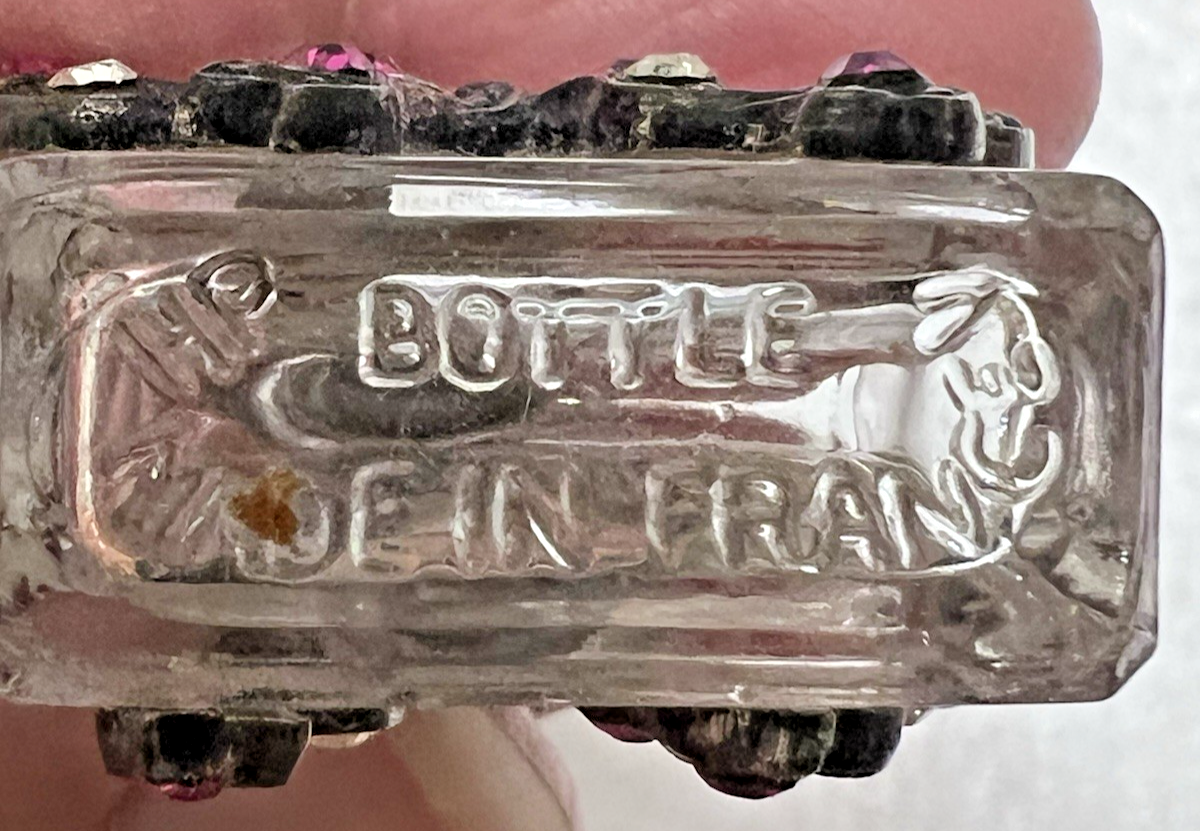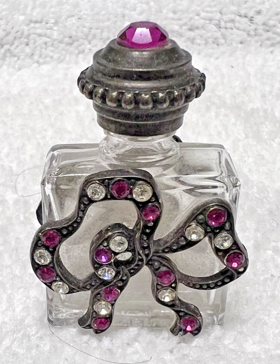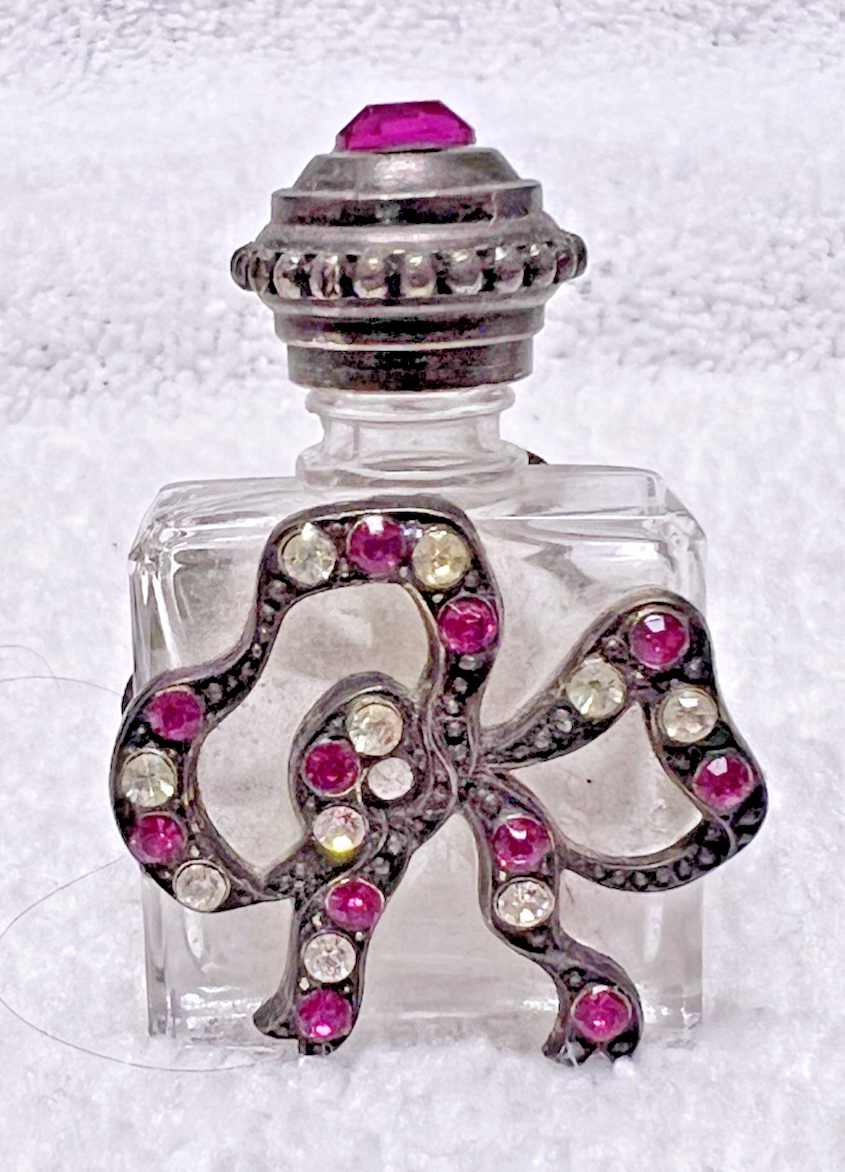 Vintage Perfume Bottle Pink Rhinestone Top & Bow in Pink & Clear Made in France