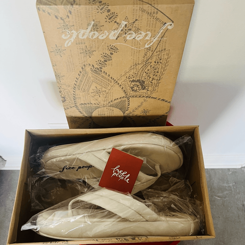 FREE PEOPLE Wonderland Leather Sandal Flip Flop, Size 9.5, White, NWT