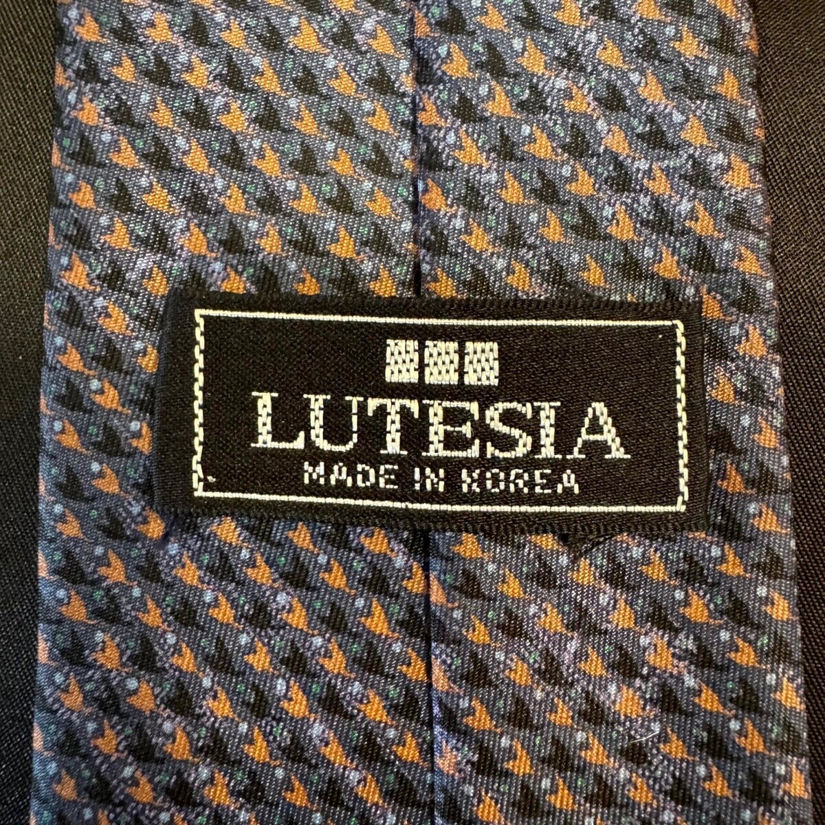Vintage Lutesia 100% Silk Tie – Navy Purple Multicolor Geometric – Made in Korea