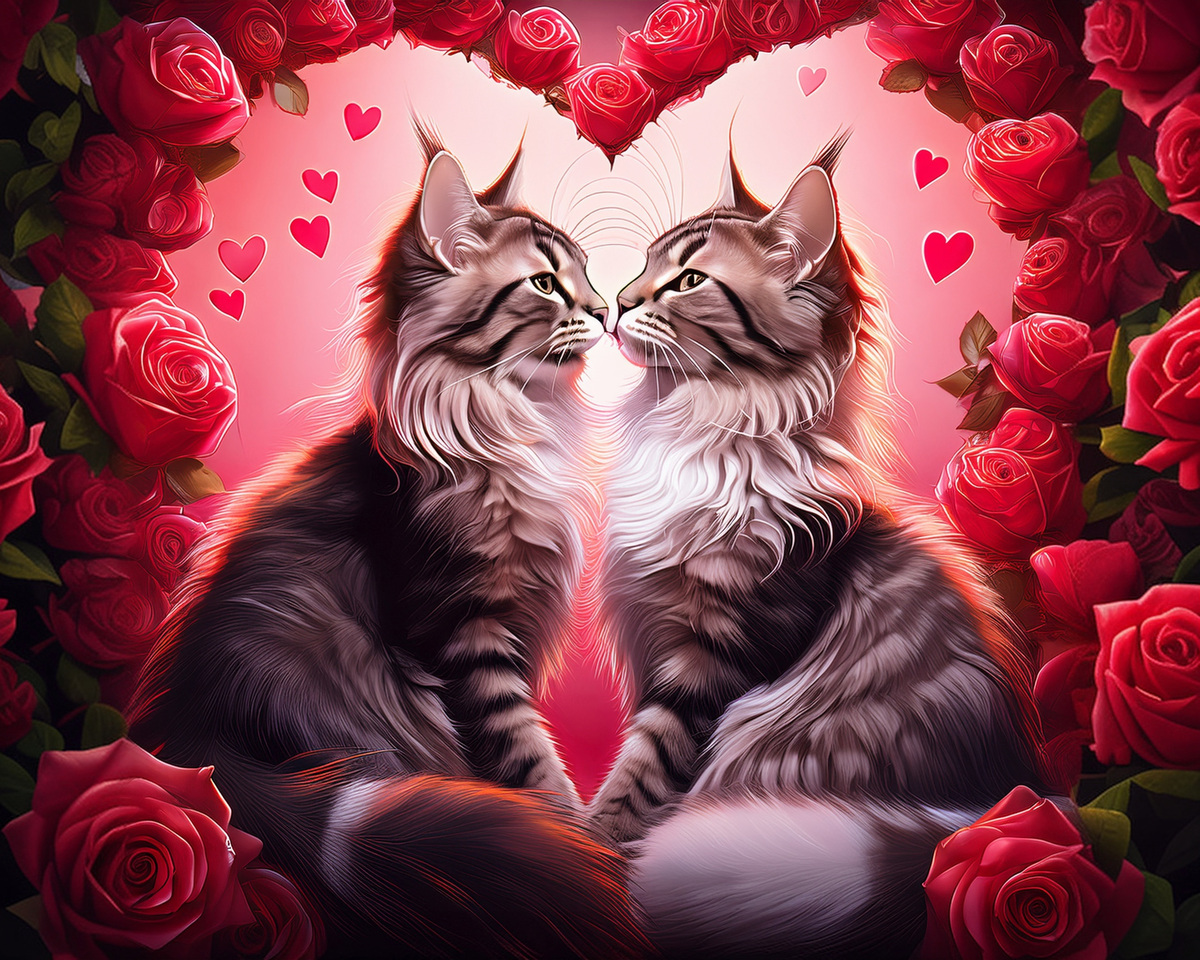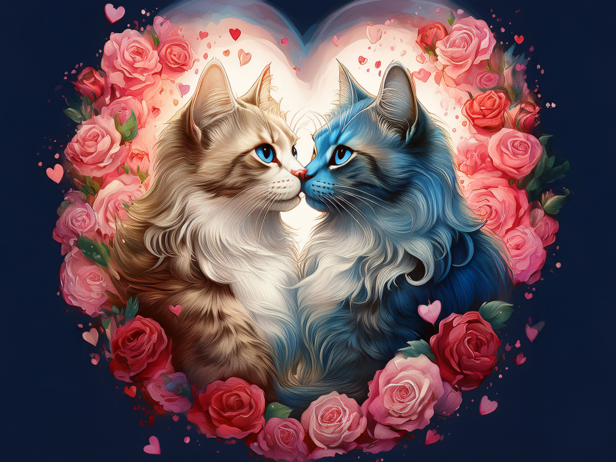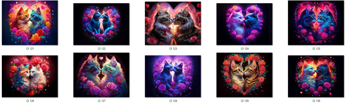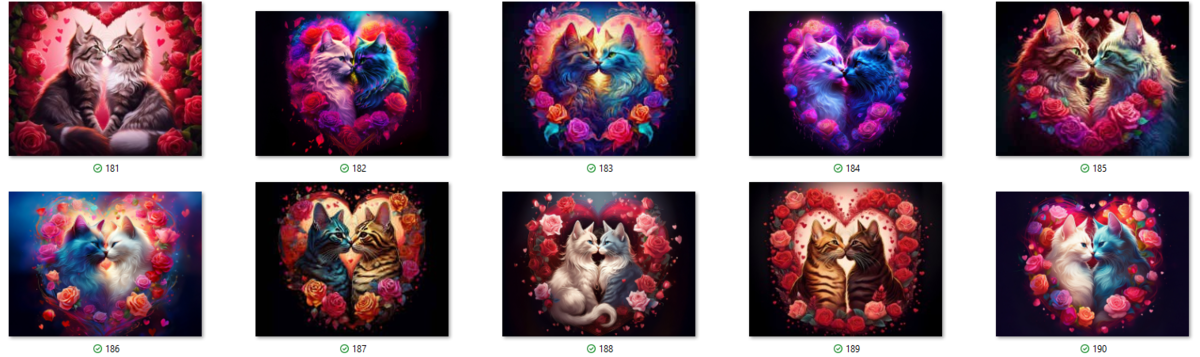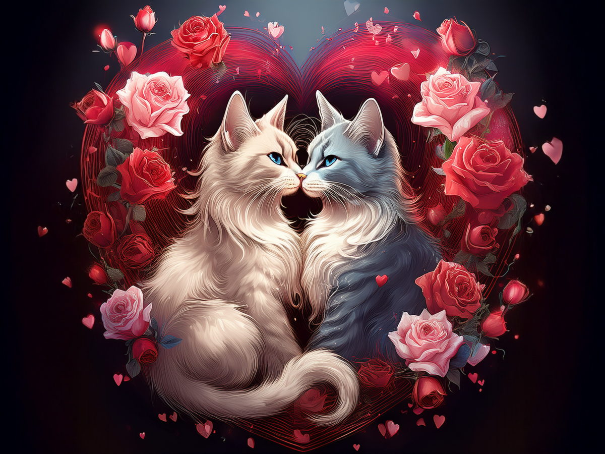 100 image bundle of Valentine cats featuring cute cat couples with roses and hearts.For commeercial use of physical products excluding transfers.