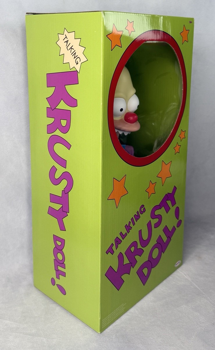 The Jakks Pacific The Simpsons Talking Krusty Doll is a 16-inch plush doll based on the character Krusty the Clown from The Simpsons TV show. This officially licensed reproduction by JAKKS Pacific features talking capabilities and comes boxed, making it a perfect collectible for fans of The Simpsons franchise. Made of plush and plastic materials, this Animator Doll is a detailed replica of the iconic character, making it a must-have for any TV, movie, or video game enthusiast.