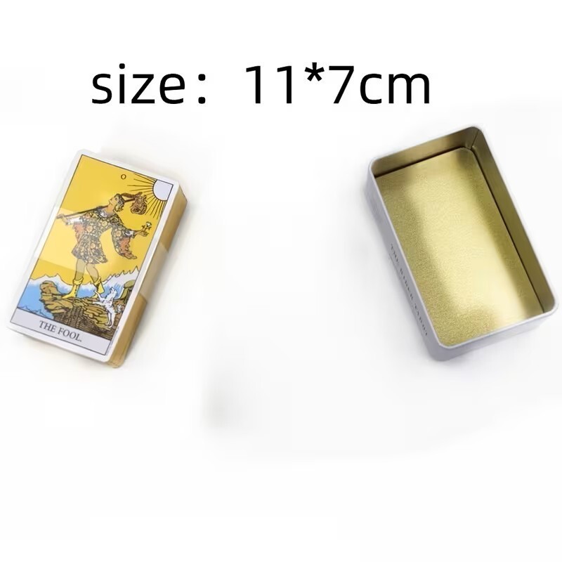 The cards are finished with elegant gold-edged detailing and come neatly stored in a durable metal tin, making this set both beautiful and practical. A general instruction booklet is included to help guide meanings and spreads, making it an excellent choice for those learning tarot or refreshing their practice.