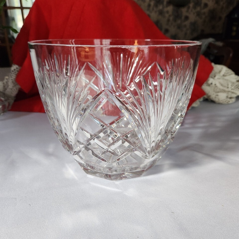Gorham Crystal Rosewood Pattern 7 ? Tall Punch Bowl. Versatile bowl can be used for serving or as a centerpiece. Stamped Gorham on bottom. Made in Germany. Excellent previously owned condition. Sells for $200 on the replacement site.