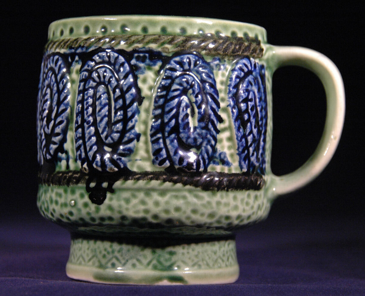 Ceramic Coffee Mug, Blue Rope Spirals w/ Green, Japan