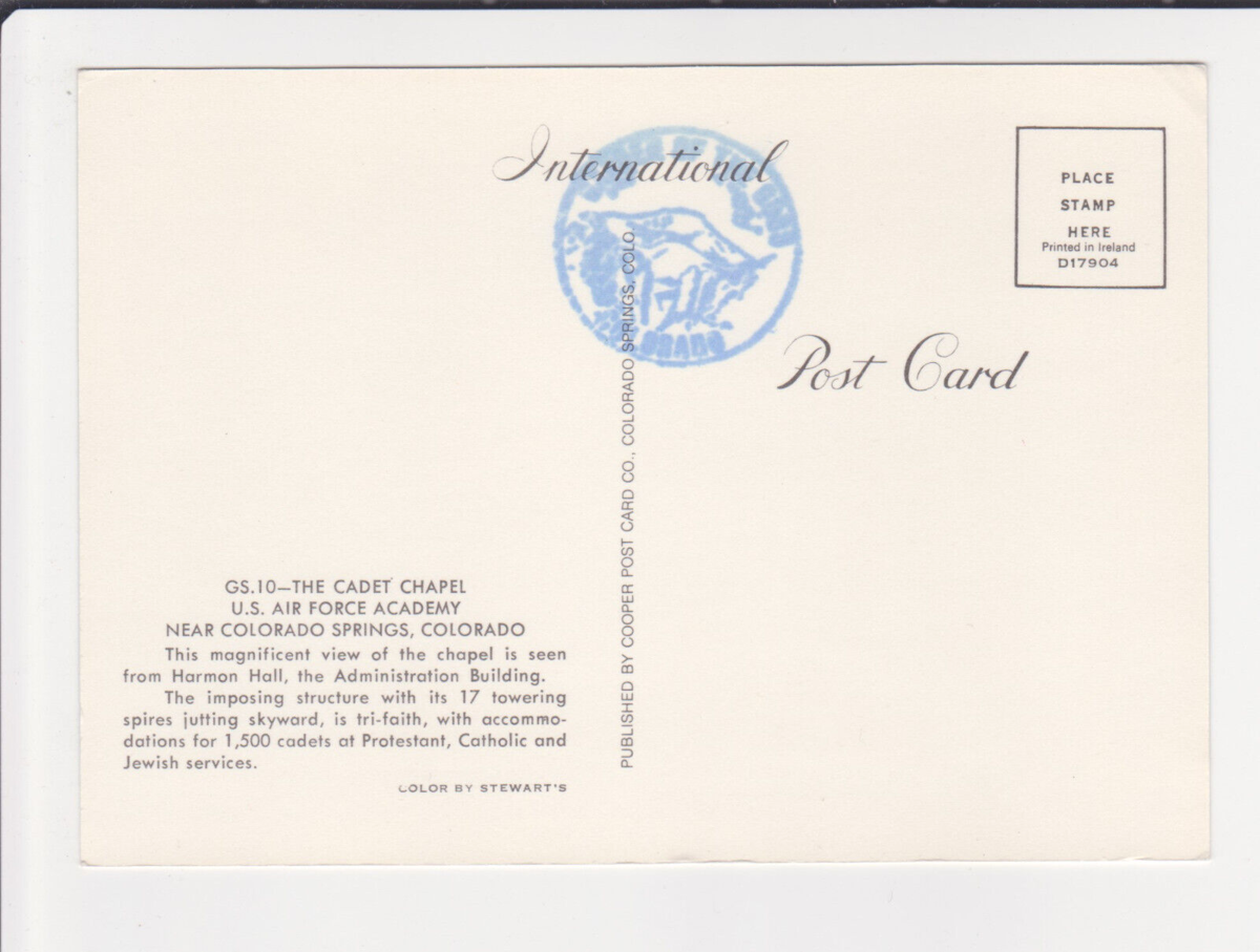 Vtg Postcard-Cadet Chapel-US Air Force Academy-Colorado Springs-6x4 Chrome-CO1