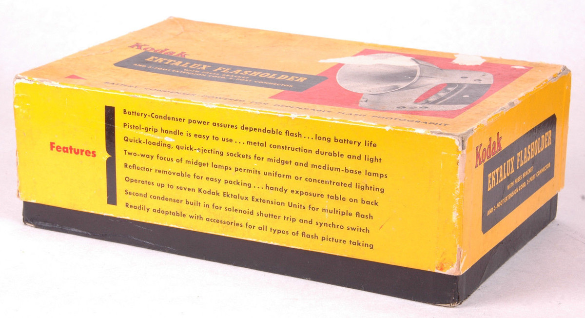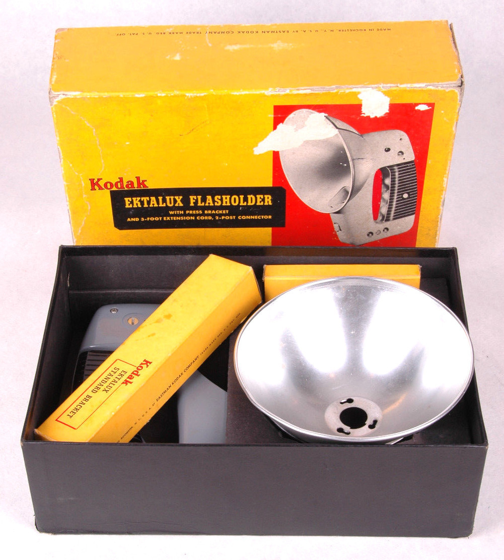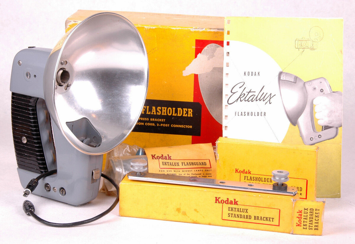KODAK Ektalux Flasholder-Yellow BOX-Bracket-Paperwork-Cable-Vintage Photography