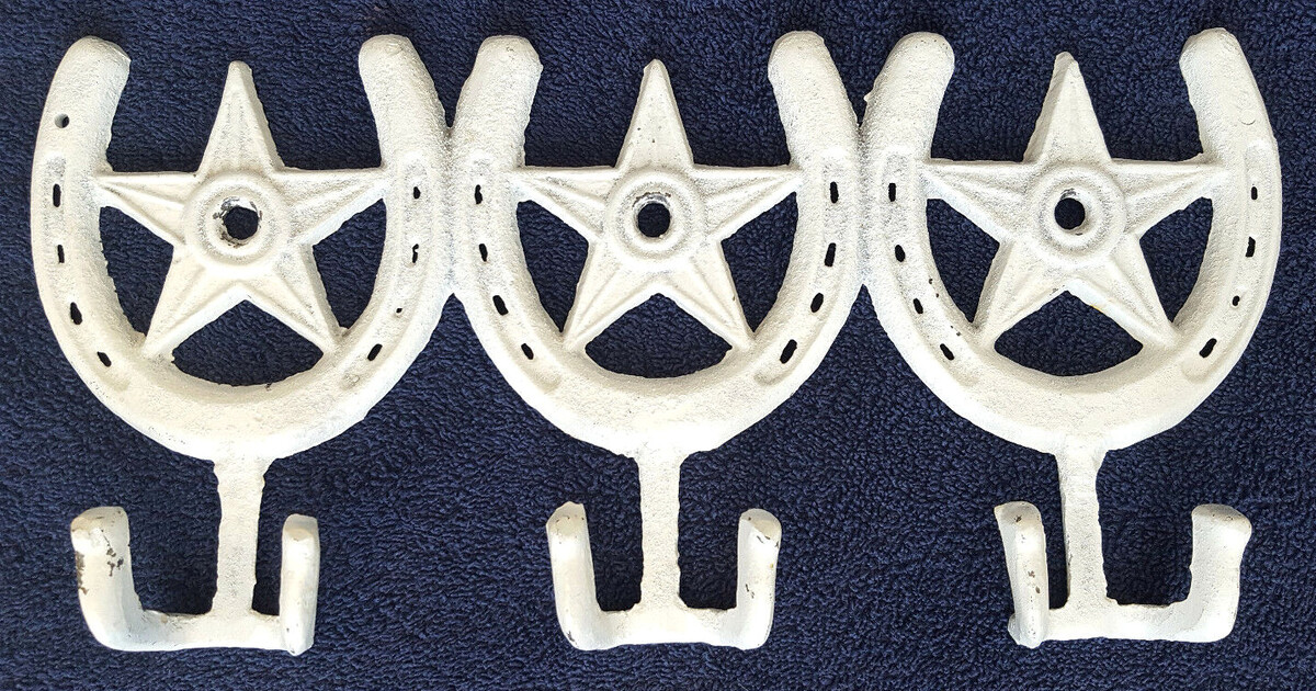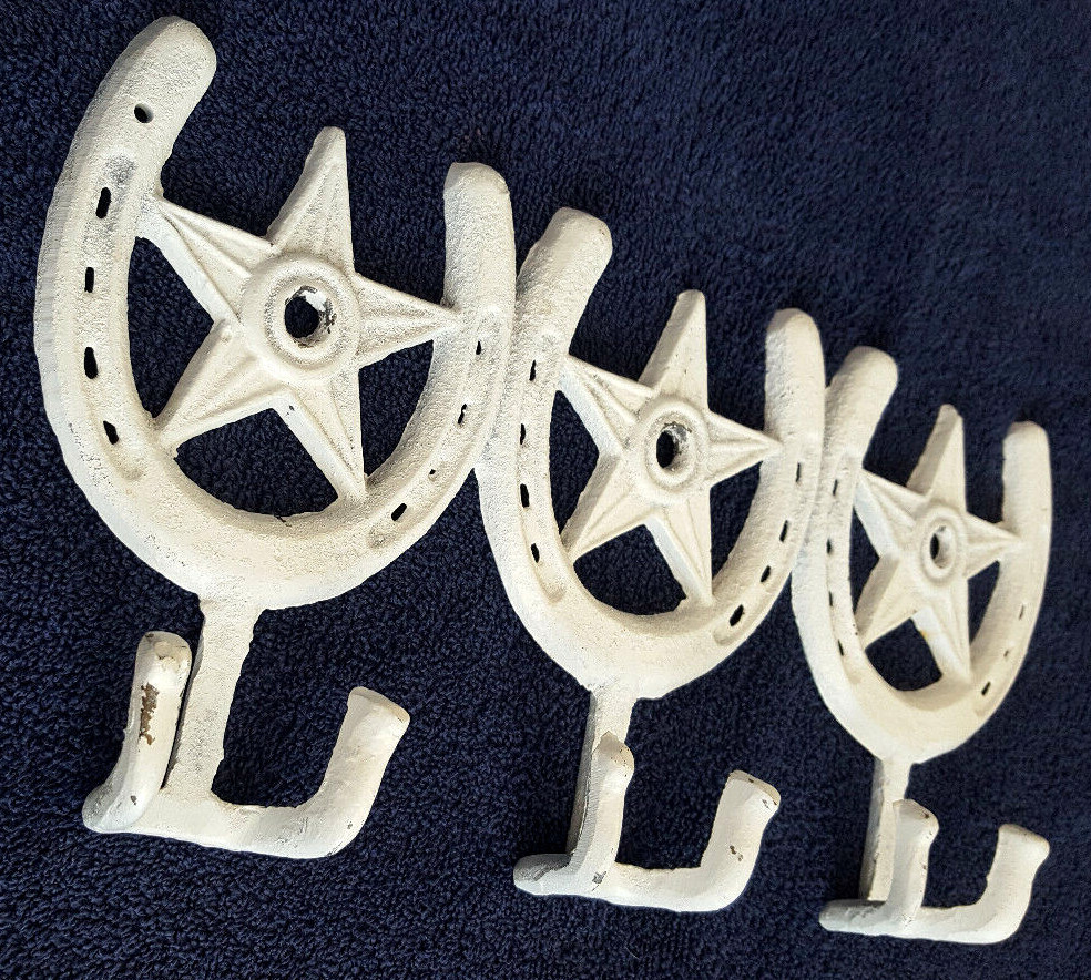 Horseshoe Coat Rack-Star-White-3 Double Hooks-Hat Wall Hanger-Country Art Decor
