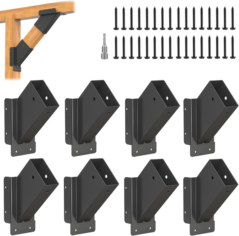 8 Pcs Pergola Bracket Kit , Reinforced 45-Degree Pergola Bracket, Gazebos Kit fo