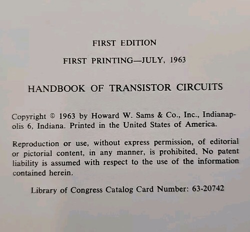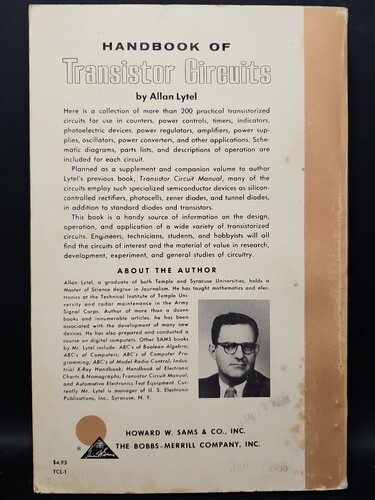 UP FOR SALE: Howard W Sams Handbook of Transistor Circuits by Lytel TCL-1 VTG 1963 1st Ed 1st Print