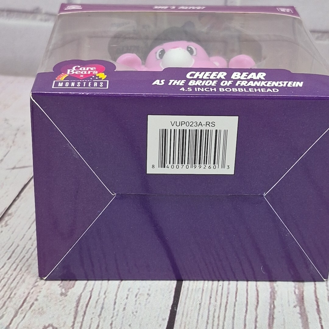 This Care Bears Cheer Bear as Bride of Frankenstein 4.5in Bobblehead is a limited edition collectible figure collaboration between Culturefly and Universal Studios. The pink bobblehead features the character Cheer Bear dressed as the Bride of Frankenstein, making it a fun and unique addition to any Care Bears collection or Halloween-themed display. Standing at 4.5 inches tall, this bobblehead is packaged in its original unopened box, adding to its appeal for collectors looking for unopened items from 2025.
