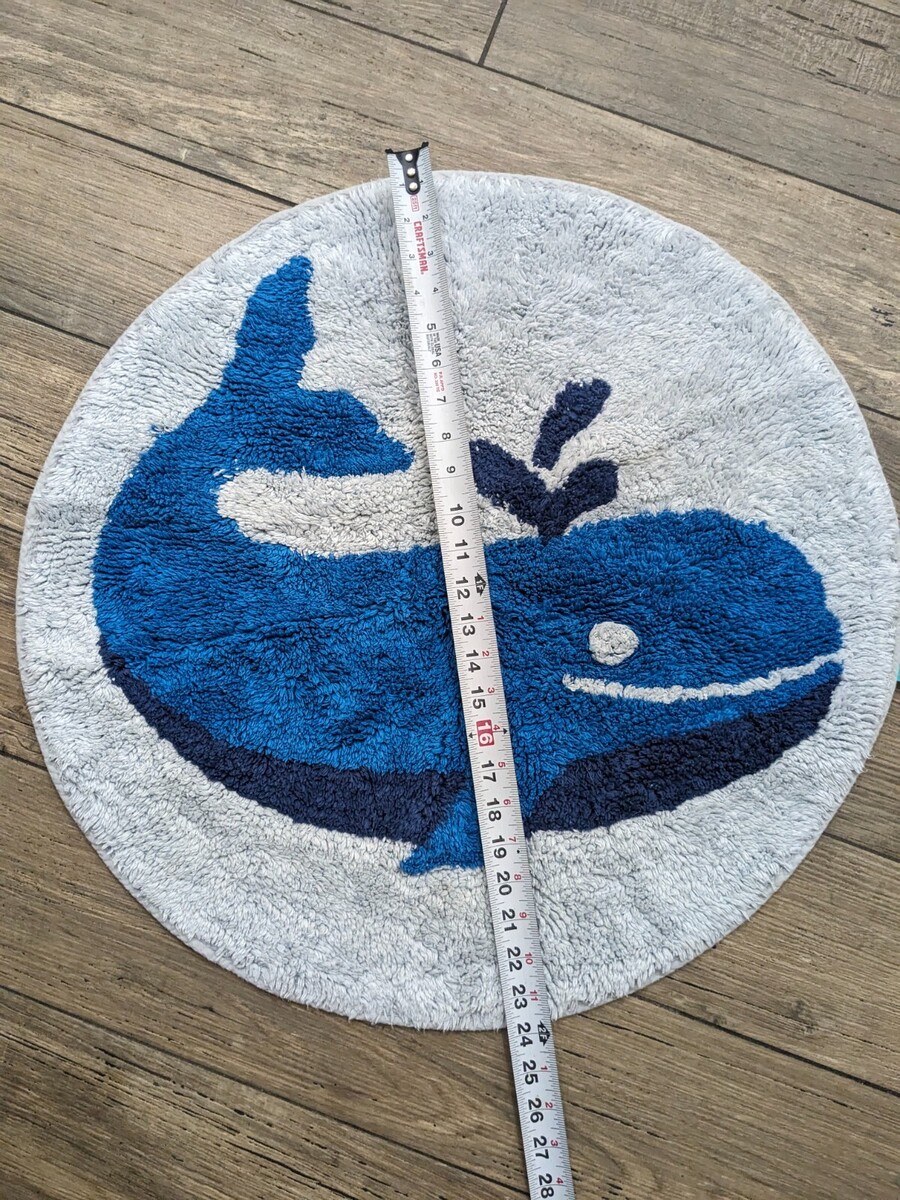 Pillowfort Whale Bathroom Rug mat Nautical blue white sea kids teen round circle