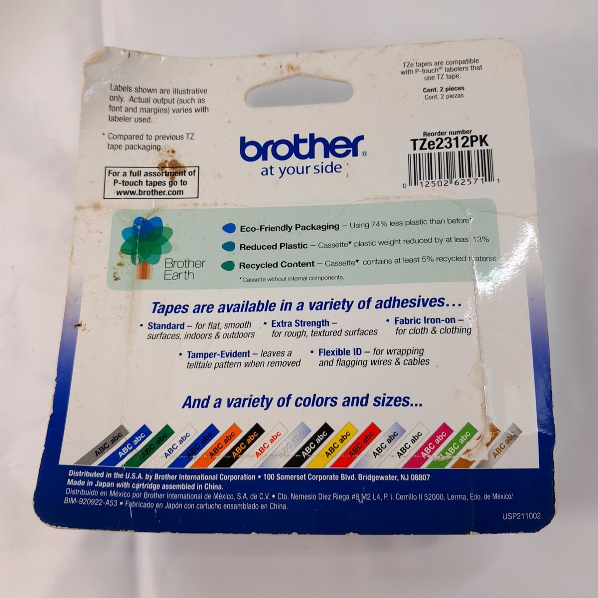 NEW Brother P-touch TZE-2312PK Tape 1/2" Black on White 2 pk TZE-231 Genuine OEM