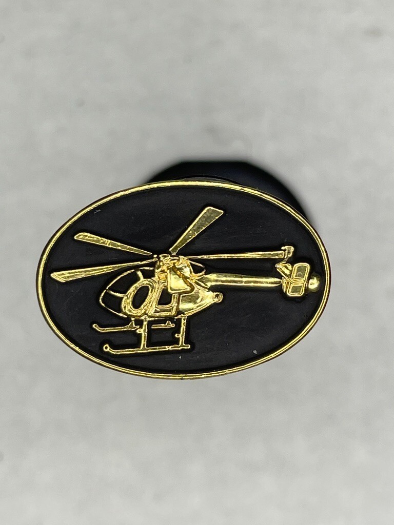 MD 600 N Helicopter Gold Plated Black Fill Oval Lapel Pin