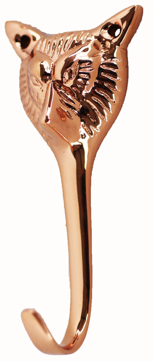 Patina finished brass Fox head wall mount hook used for hanging coats, hats, bags, towelss, etc. Pre-drilled holes for easy mounting w/ hardware included. Meaures 4 H x 1 7/8 W inches