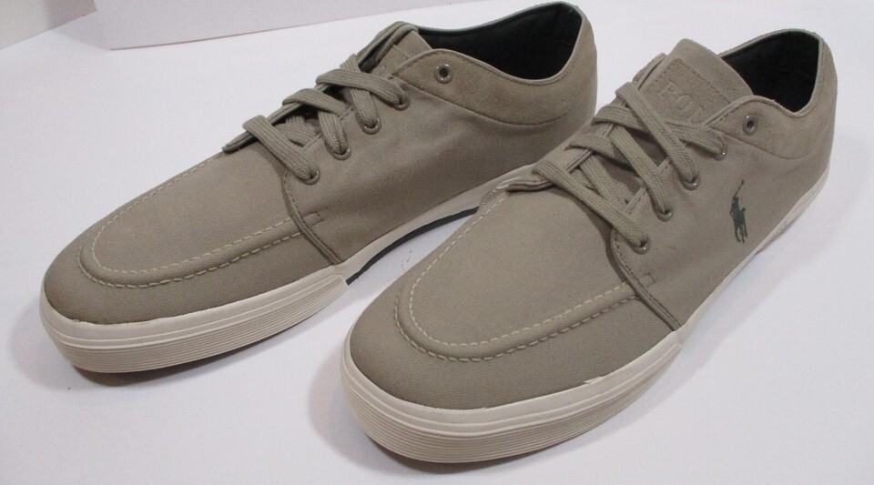 POLO RALPH LAUREN MENS SIZES 15 16 17 TAN BEIGE CANVAS FERNANDO FASHION SNEAKER