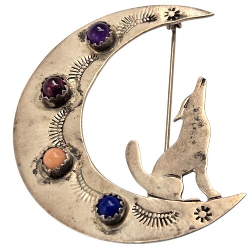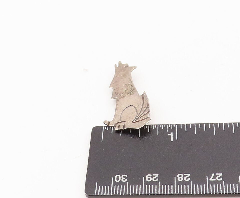 925 Sterling Silver Vintage Brooch Pin Southwestern Howling Etched Wolf BP10549