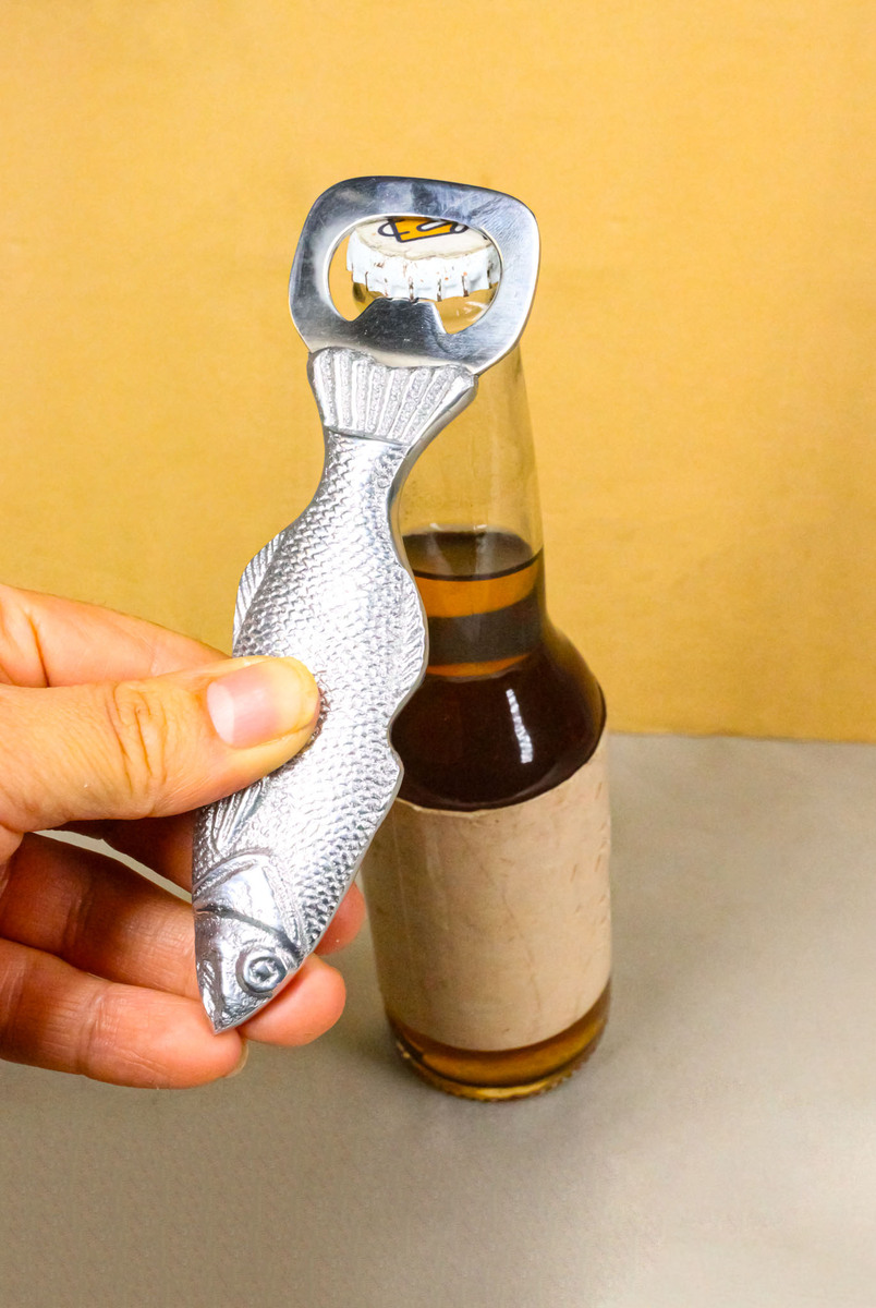 ? This Nautical Grouper Fish Hand Bottle Opener is made of aluminum, hand polished individually. Color Tone may vary slightly from pictures.