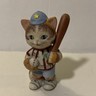 Calico Kitty Cat Porcelain Figurine Baseball Player 3" Tall