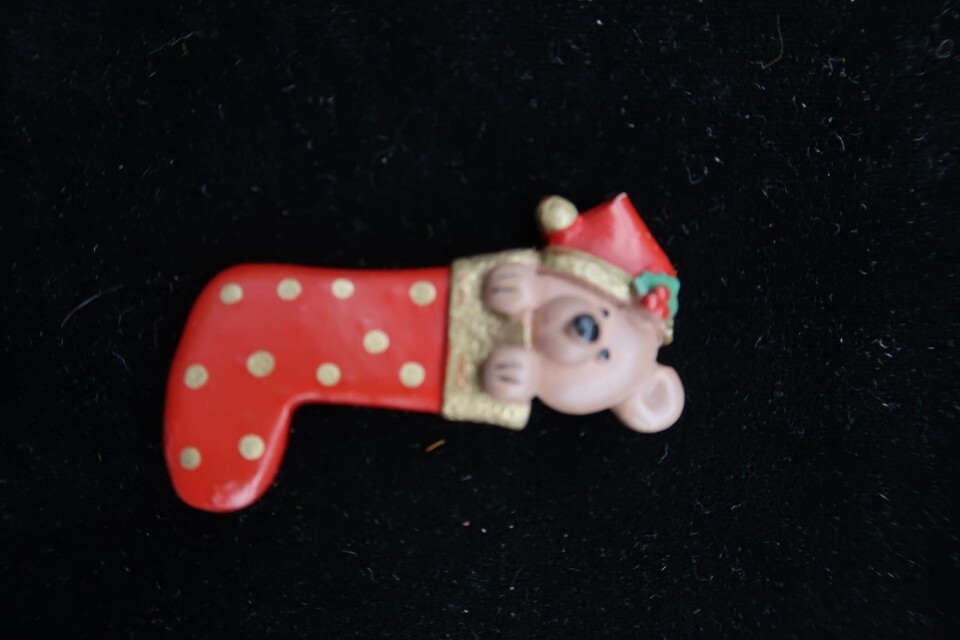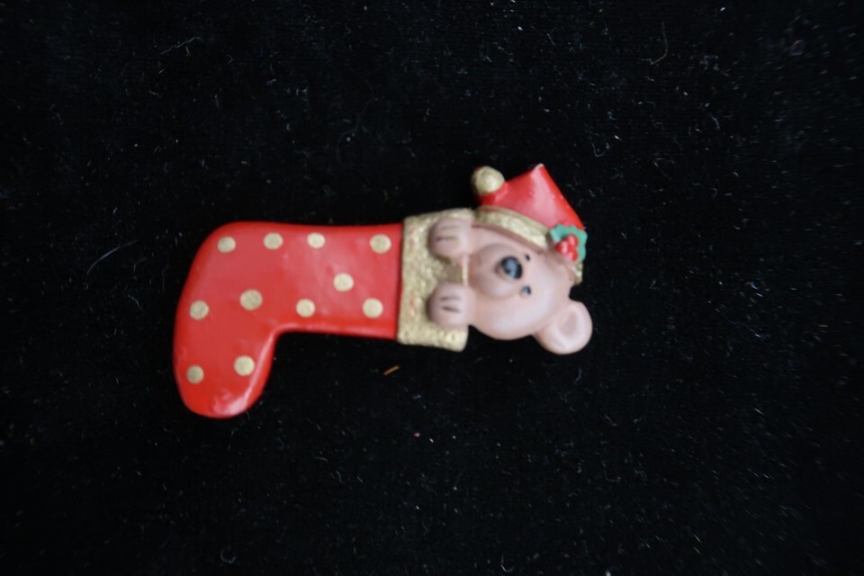 Vtg Teddy Bear in Stocking Pin w/ Gilded and 48 similar items