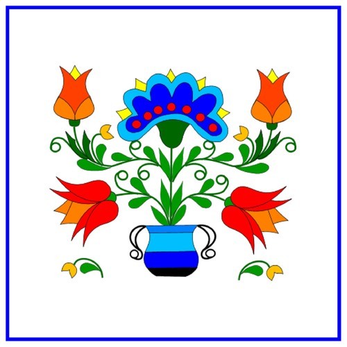 Design features: Multicolored flowers and leaves.