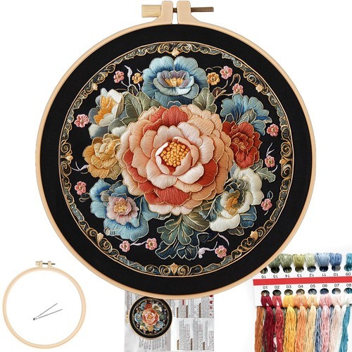 Kit Includes Everything You Need: 9.8in x 9.8in (25 x 25 cm) 14 Count - 100 Percent Cotton, Aida Cloth, 6in. Bamboo Hoop, DMC Embroidery Floss, Tapestry Needle, and Complete Instructions.