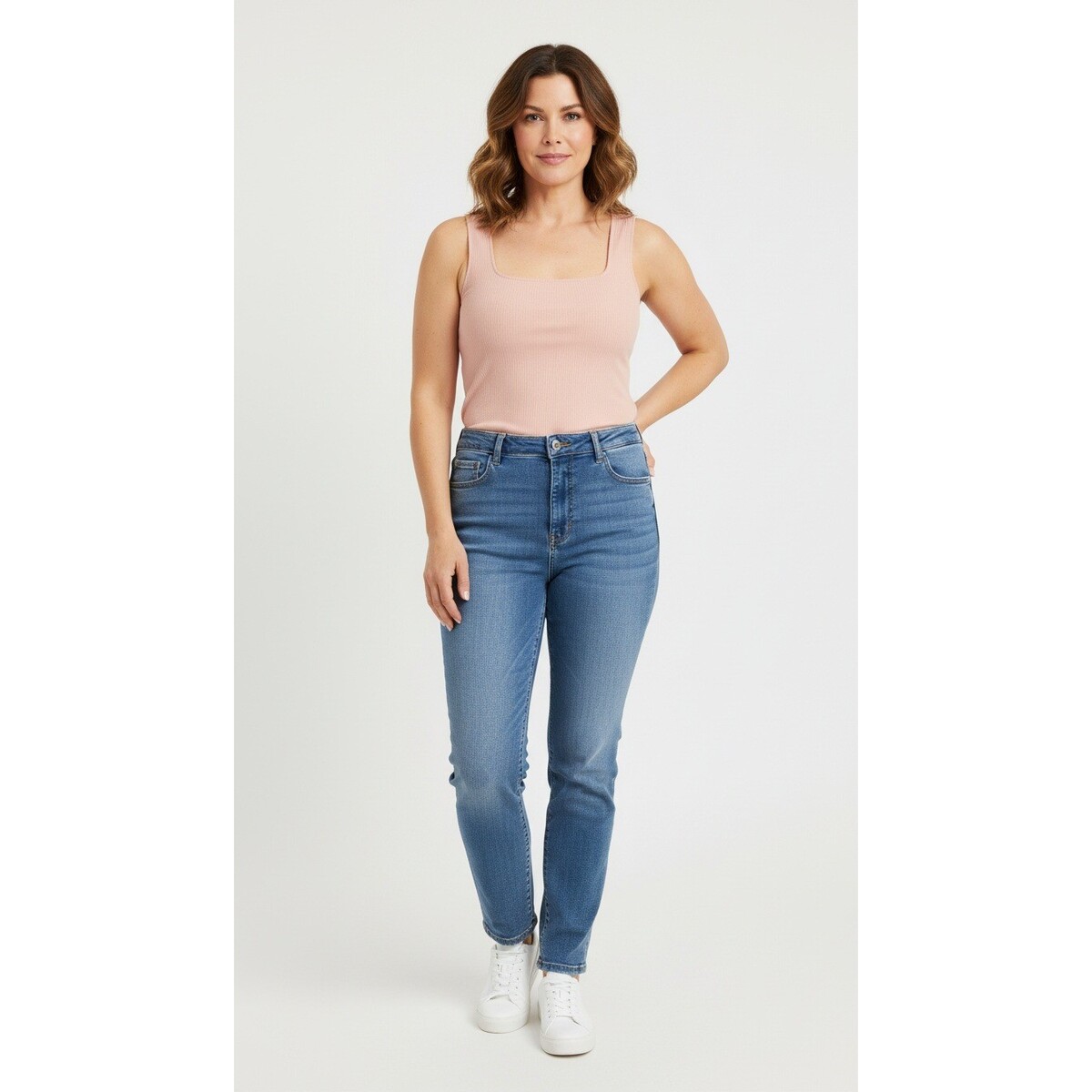 Elevate your everyday style with this soft peach ribbed tank top. Designed with a flattering square neckline and a comfortable sleeveless silhouette, this top offers a touch of effortless chic to any outfit. The subtle ribbing adds a touch of texture, making it a versatile layering piece or a standalone statement.