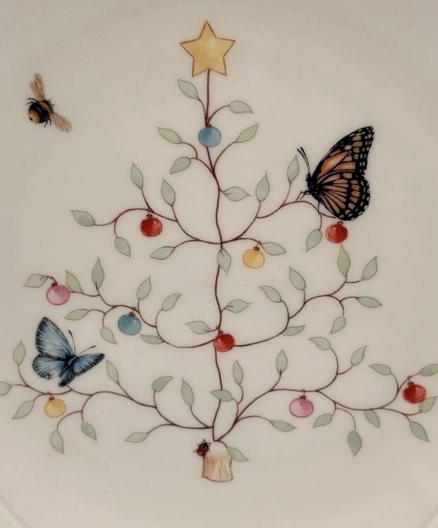 Lenox Butterfly Meadow Seasonal 4pc 8” Dessert Plate Christmas Tree BNWT